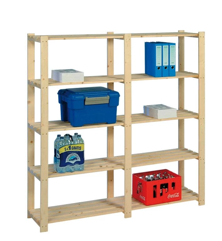 Dit dubbele opbergrek telt 5 lange legplanken die telkens bestaan uit 4 latten van 12 mm dik. Plaats genoeg dus om al jouw spullen netjes te ordenen. Elke legplank mag een gewicht van 30 kg dragen.