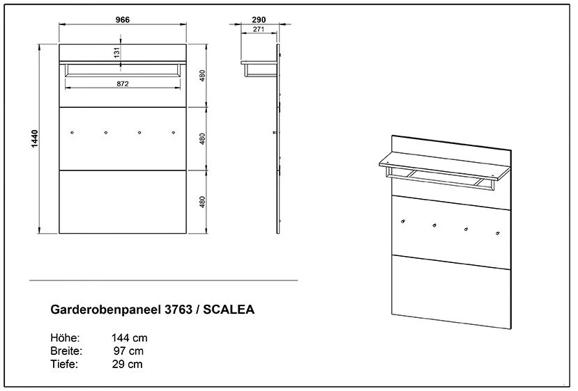 De Scifo-reeks voor je inkomhal van Germania oogt niet alleen mooi, maar is ook uiterst praktisch. Dit witte kapstokpaneel bijvoorbeeld combineert een strakke en moderne uitvoering met een handige indeling en een comfortabel gebruik. Het tijdloze design en kleur maakt van dit meubel de ideale aanvulling van je inkomhal. Naast een kledingroede en een hoedenplank is het meubel ook uitgerust met vier jashaken in metaal. Het paneel is opgebouwd uit spaanplaat en voorzien van fronten in gehard veiligheidsglas. De kwaliteitsvolle ABS-randen en de melaminecoating maken het meubel volledig af! Ontdek deze en andere reeksen van de Duitse meubelproducent Germania op onze website!
