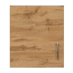 Keukenhangkast Sorrella 50x34x57cm uit spaanplaat met metalen handgrepen. Afgewerkt met melamine in eikdecor. Met 1 deur en 1 legplank.ย