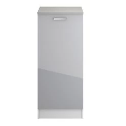 Met de kasten van keuken Eli kies je volledig zelf hoe jouw nieuwe keuken er komt uit te zien. Deze keukenkast is gemaakt van spaanplaat en is afgewerkt in hoogglans grijs. Ze bestaat uit een deur en 3 legplanken. Je kan tijdens de montage zelf kiezen of je het deurtje naar links of rechts laat openen.
