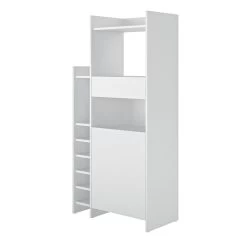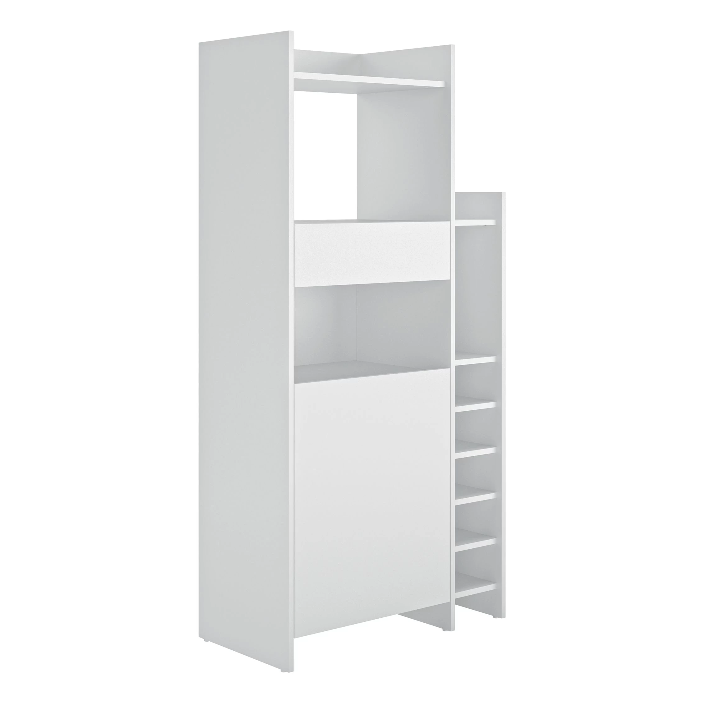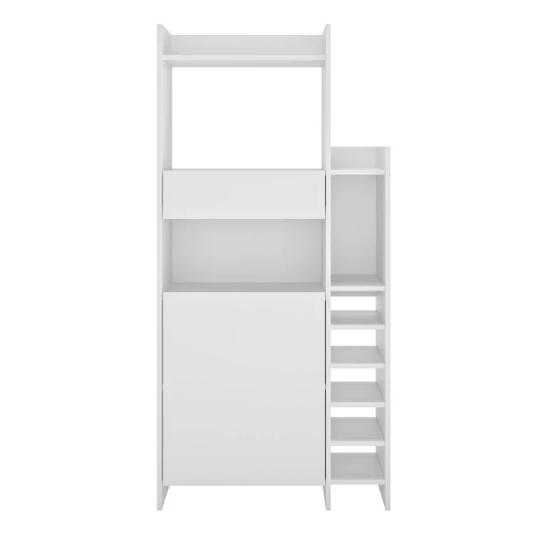 Deze keukenkast biedt de perfecte symbiose tussen nut en esthetiek, tussen opbergplaats en elegante look. Deze opbergkast kan je eenvoudig in je keuken of eetkamer integreren, zodat je kookboeken, mooiste glazen of enkele flessen wijn netjes opgeborgen kunnen worden. Dit meubel is gemaakt uit witte, gemelamineerde spaanplaat en is uitgerust met 1 lade en 1 deur. In het meubel beschik je over zowel grote als minder grote opbergvakjes, op maat van elk accessoire of object.