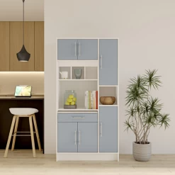 Deze praktische keukenkast met talloze opbergmogelijkheden biedt je de mogelijkheid om naast je microgolfoven heel wat andere keukenspullen op te bergen. Je kan de Liana-kast zelfs gebruiken als voorraadkast.