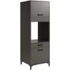 De keuken is het hart van het huis. Het is dus belangrijk om keukenkasten te kiezen die volledig aan je wensen voldoen. Deze keukenkast is gemaakt uit spaanplaat, afgewerkt met melamine in antraciet en eikdecor. De metalen handgrepen zijn een leuk detail. In de twee diepe lades kan je allerlei keukenspullen en servies netjes opbergen. De kleine lade is dan weer handig om kleinere items zoals bestek op te bergen. De collectie Sorrella bestaat in verschillende uitvoeringen. Stel zelf je droomkeuken samen.