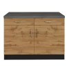 De keuken is het hart van het huis. Het is dus belangrijk om keukenkasten te kiezen die volledig aan je wensen voldoen. Deze keukenkast is gemaakt uit spaanplaat, afgewerkt met melamine in eikdecor. De metalen handgrepen zijn een leuk detail. In de twee diepe lades kan je allerlei keukenspullen en servies netjes opbergen. De kleine lade is dan weer handig om kleinere items zoals bestek op te bergen. De collectie Sorrella bestaat in verschillende uitvoeringen. Stel zelf je droomkeuken samen.