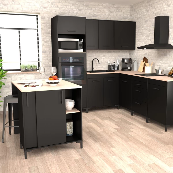 De keuken is een uitdagende ruimte om in te richten. Met de kastjes uit de reeks Cobalt stel je zelf je keuken samen. Het stoere ontwerp past volledig in de industriële New York-loft stijl. Het werkblad in eikdecor zorgt voor een warm accent. Deze kolomkast is gemaakt in spaanplaat met afwerking in zwarte melamine. De kast heeft twee nissen voor respectievelijk een microgolfoven en een inbouwoven. Daarnaast heb je dankzij de twee deuren ruimte om allerlei keukengerief netjes op te bergen. Ontdek alle mogelijkheden uit de reeks Cobalt op onze website.