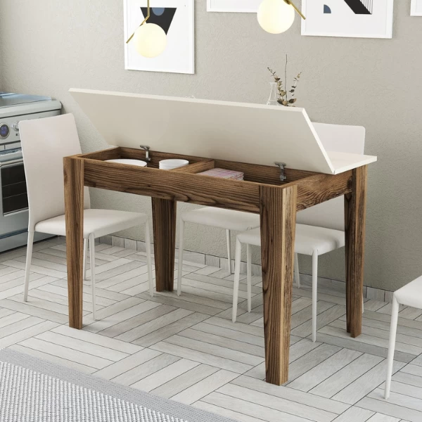 De Woody Fashion keukentafel is volledig gemaakt van gemelamineerde spaanplaat en wordt geleverd in een stijlvolle walnootcrèmige kleur.
