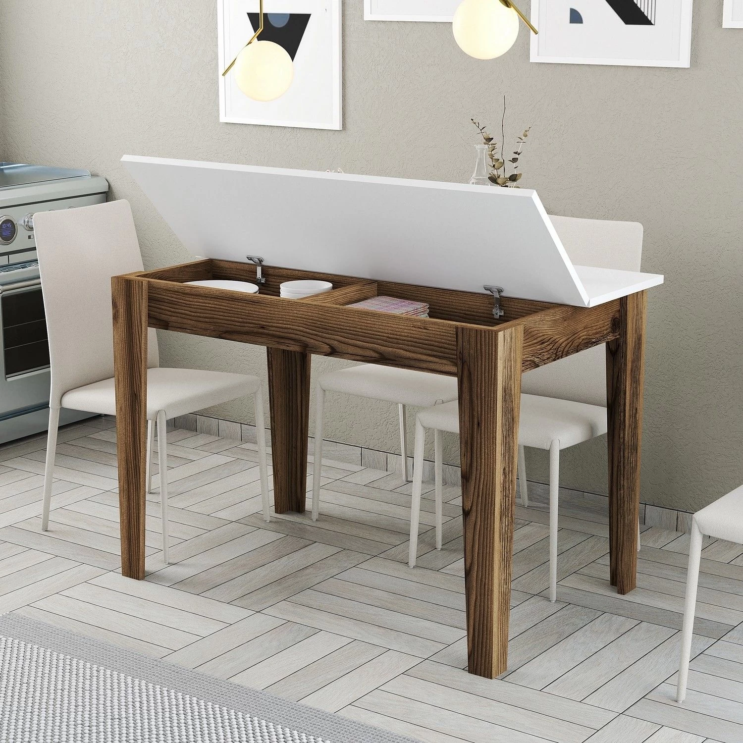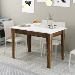 De Woody Fashion keukentafel is volledig gemaakt van gemelamineerde spaanplaat en wordt geleverd in een stijlvolle walnootkleur met strakke, witte details.