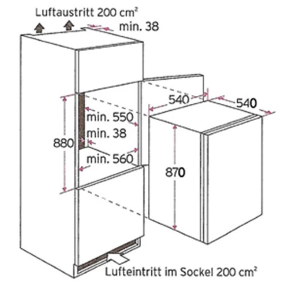 -keukenkast 60x60x200cm met ovenย PKM F7-2ย en koelkastย PKM KS120.4A+EB
