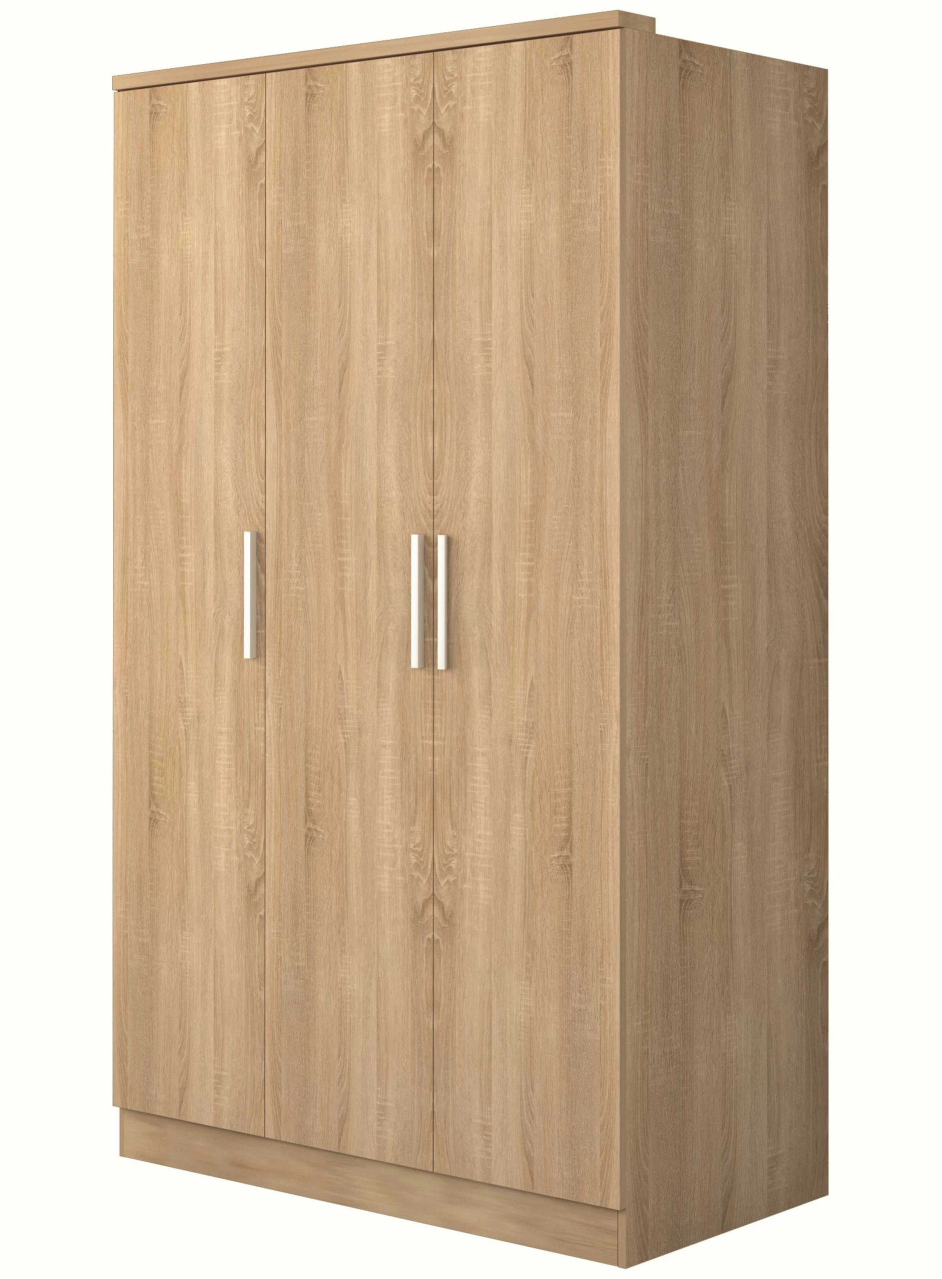 Kledingkast Ramos met 3 deuren, met hang- en leggedeelte. Gemaakt van spaanplaat met eikdecor.