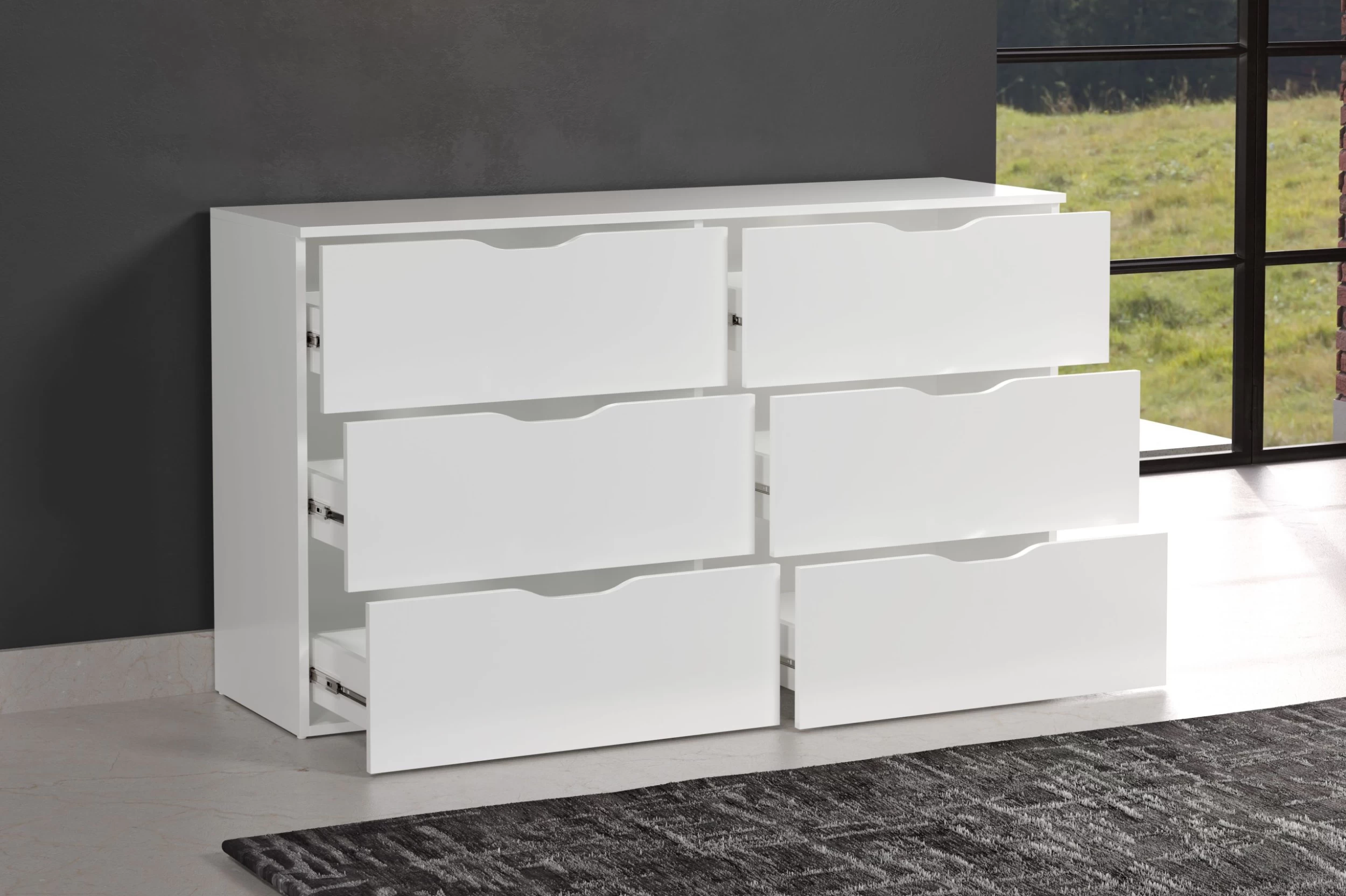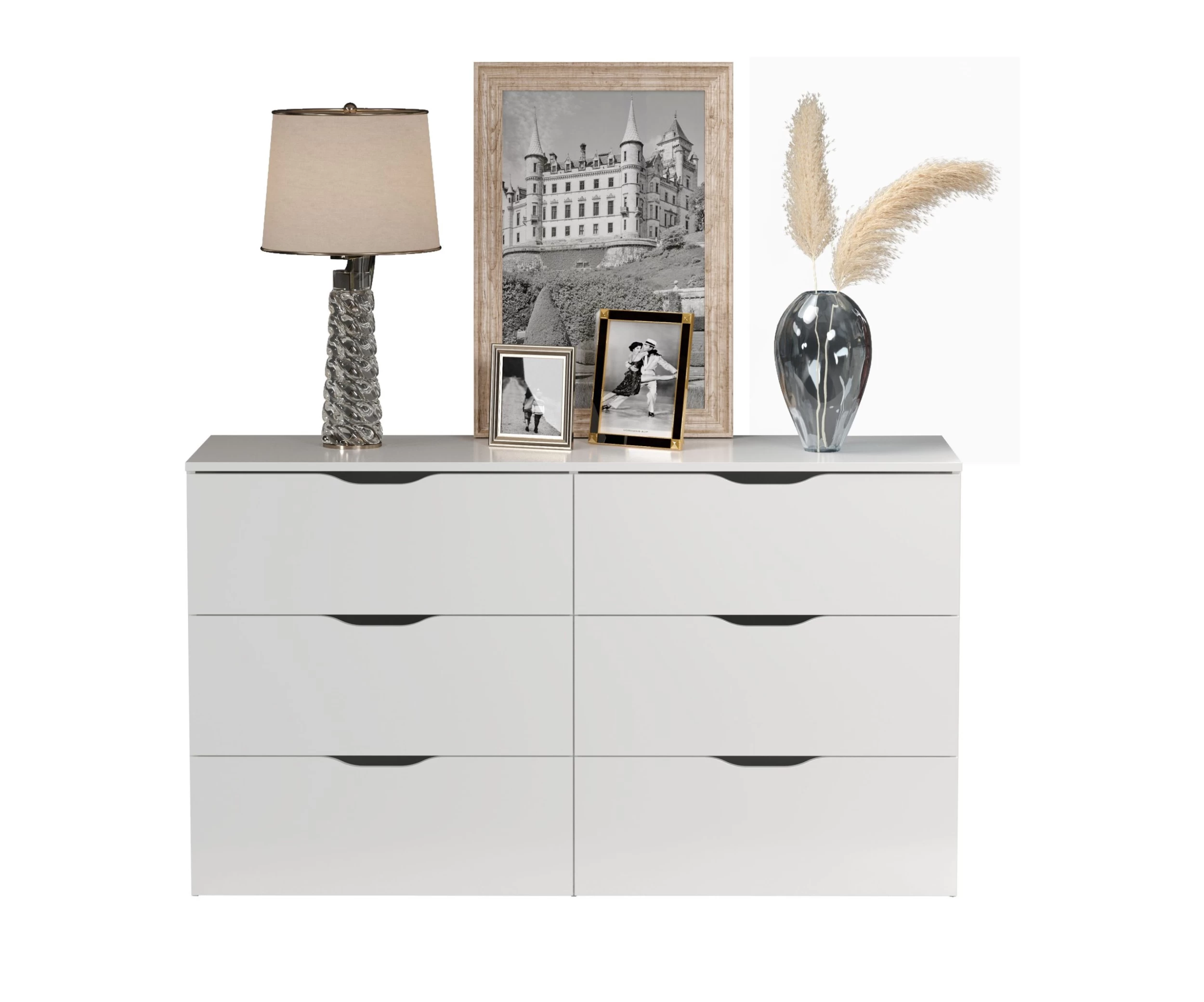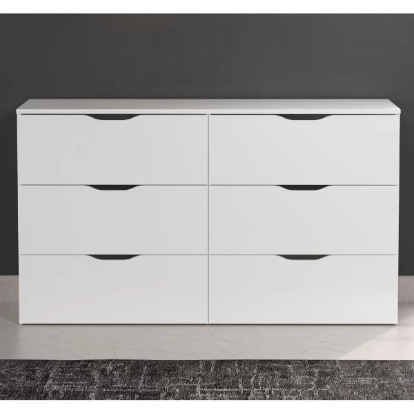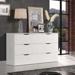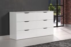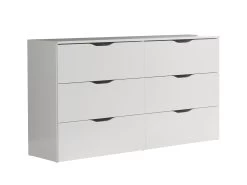 Het witte melaminefront en rompontwerp voegt een tijdloos tintje toe aan je ruimte en past naadloos in elk interieur. Het melamine-oppervlak geeft deze ladekast niet alleen duurzaamheid, maar is ook gemakkelijk schoon te maken en te onderhouden.