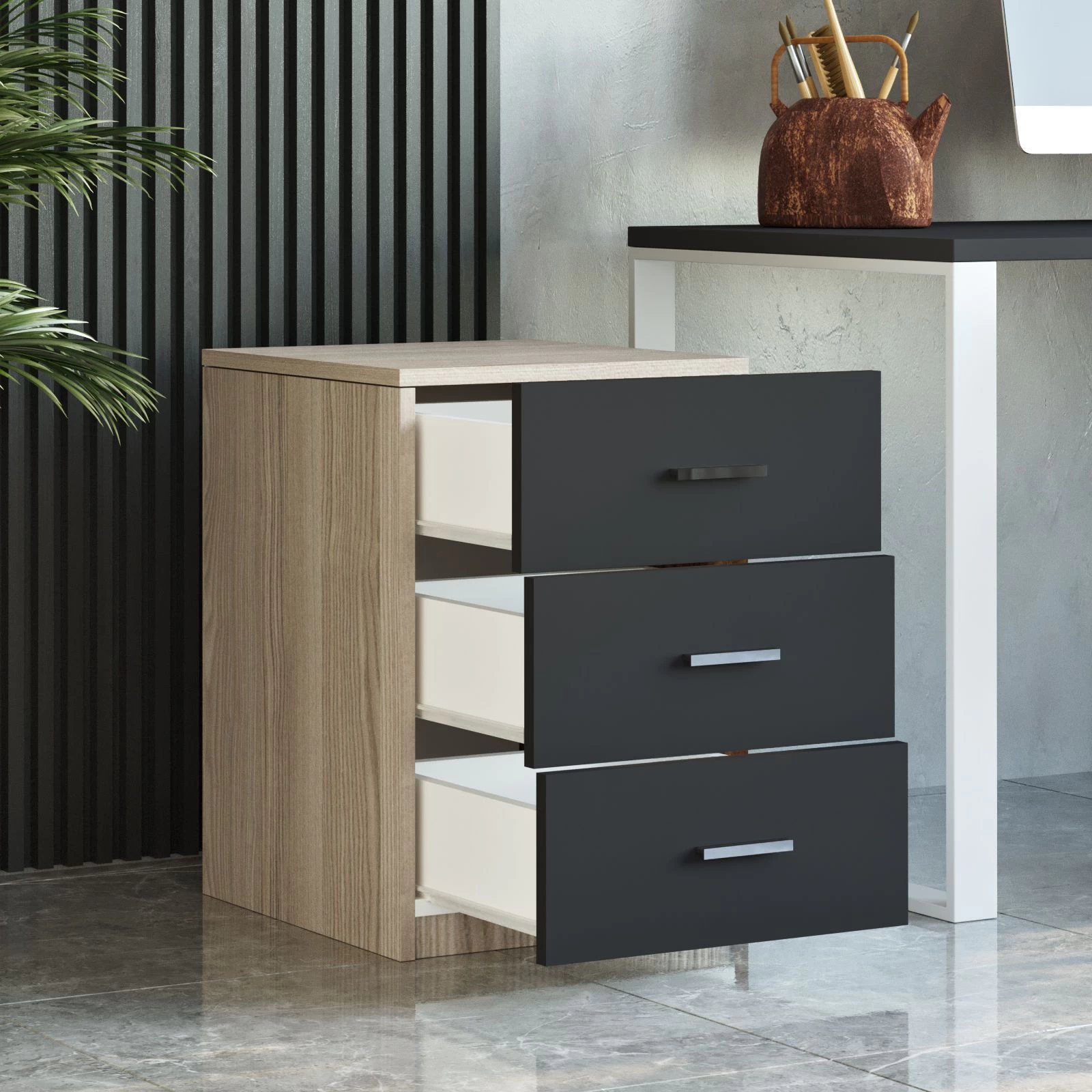 De Locelso ladekast is gemaakt van 100% gemelamineerde spaanplaat dat een dikte heeft van 18 mm en een breedte van 44 mm. De kleur is eikenzwart.