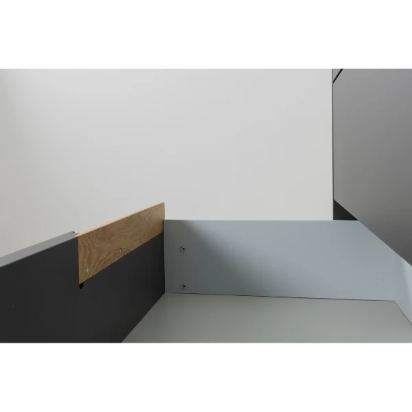 Door hun eenvoud, hun strakke lijnen en hun klassieke kleuren passen de meubels uit de Switch-collectie perfect in een modern, minimalistisch interieur. De designers kozen ervoor om de meubels een witte, bosgroene of antracietkleur te geven en te voorzien van eikenhouten details, combinaties die zeer goed uitgepakt hebben en iedereen zullen kunnen bekoren. De kasten beschikken daarnaast over asymmetrische handvaten en lades die uitgerust zijn met een softclose-systeem.ย