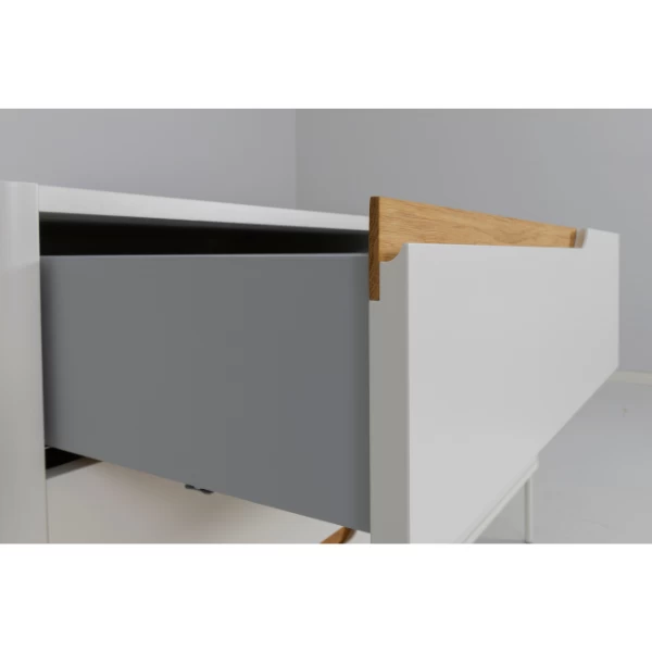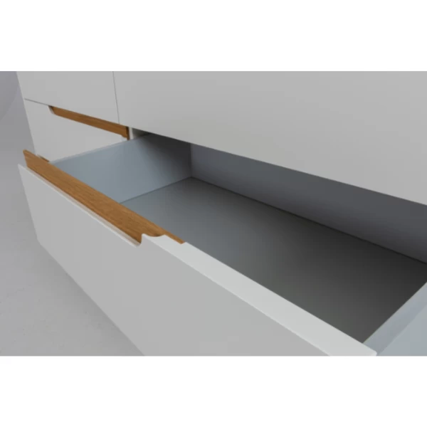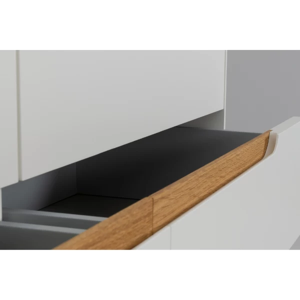 Door hun eenvoud, hun strakke lijnen en hun klassieke kleuren passen de meubels uit de Switch-collectie perfect in een modern, minimalistisch interieur. De designers kozen ervoor om de meubels een witte, bosgroene of antracietkleur te geven en te voorzien van eikenhouten details, combinaties die zeer goed uitgepakt hebben en iedereen zullen kunnen bekoren. De kasten beschikken daarnaast over asymmetrische handvaten en lades die uitgerust zijn met een softclose-systeem.ย