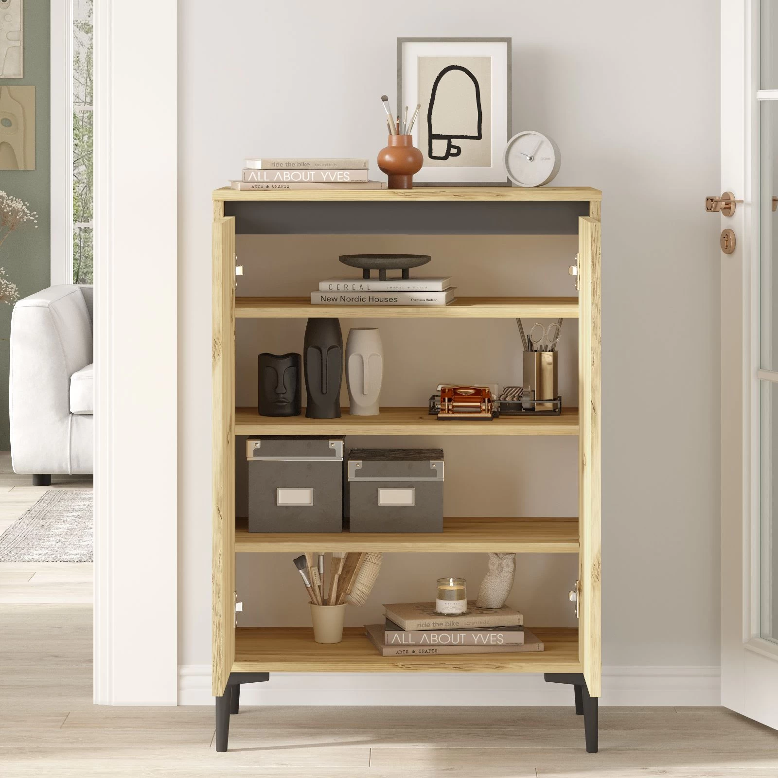 Een van de belangrijkste kenmerken van de Locelso multifunctionele kast zijn de vele legplanken. Deze planken bieden een perfecte plek voor het opbergen en organiseren van verschillende items zoals boeken, documenten, fotoalbums of decoratieve voorwerpen. Met meerdere planken heb je genoeg ruimte om alles netjes op te bergen.