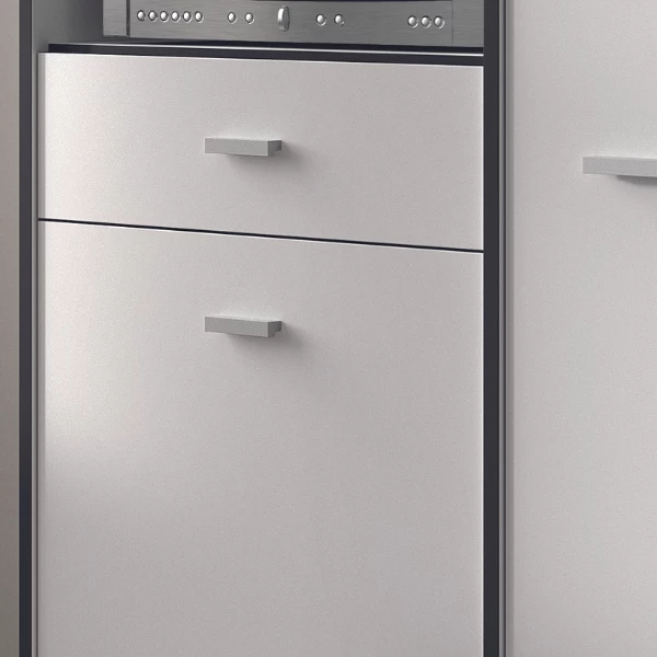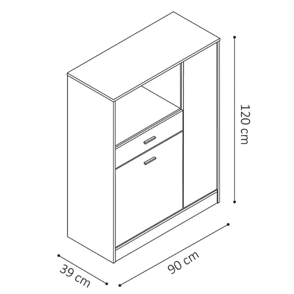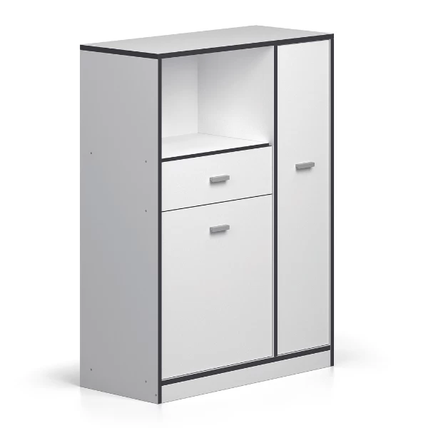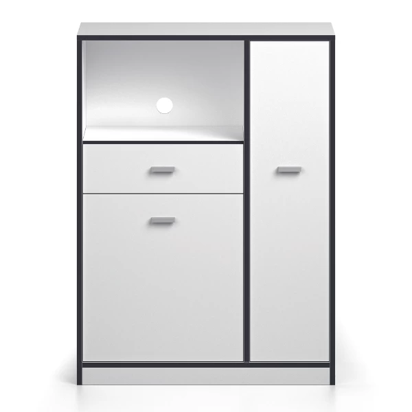 Microgolfkast Ingaย vindt gemakkelijk zijn weg in bijna elk interieur dankzij zijnย neutrale kleurencombinatie van wit en grijs. Deย metalen handgrepenย geven het meubel een moderne uitstraling. Het meubel bestaat uitย 2 draaideuren, 1 legplank, 1 lade en 1 open vak voor microgolfoven. Bekijk ook de andere meubels uit deย Inga collectie.ย