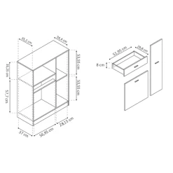 Microgolfkast Inga gemaakt uit MDF en spaanplaat bestaat uit 2 draaideuren, 1 legplank, 1 lade en 1 open vak voor microgolfoven en heeft metalen handgrepen.