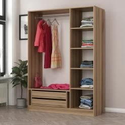 Maak kennis met de Woody Fashion Kledingkast, een prachtige aanwinst voor elk huis. Deze kast is gemaakt van 100% gemelamineerd spaanplaat van hoge kwaliteit en is gemaakt om lang mee te gaan. Met een dikte van 18 mm is hij uitzonderlijk sterk en duurzaam.