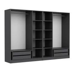 De strakke en moderne antracietkleur van de kast voegt een elegant accent toe aan elke kamerinrichting en past naadloos bij bestaande meubels. Of het nu voor je slaapkamer, logeerkamer of inloopkast is, deze kledingkast verbetert de esthetiek van de ruimte.