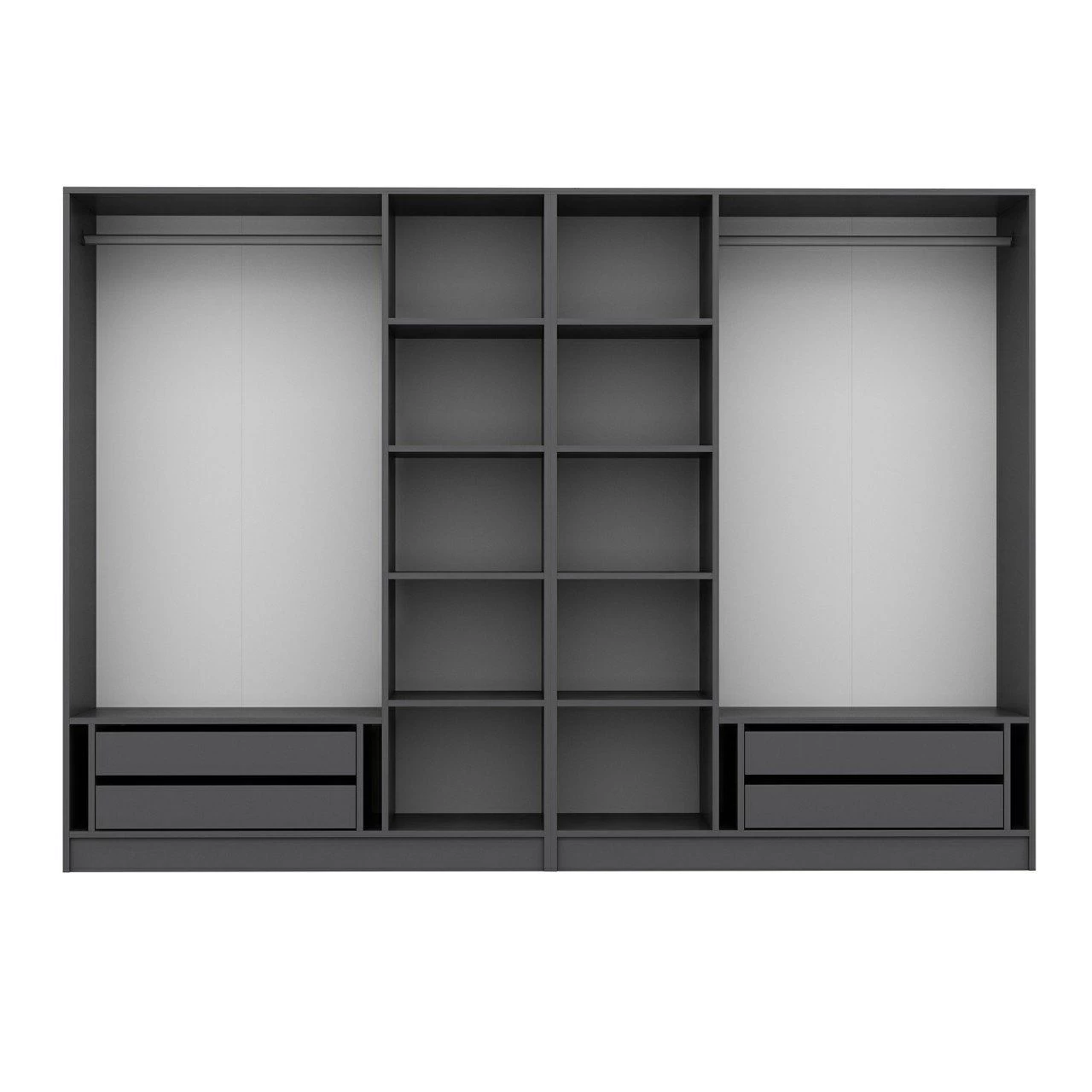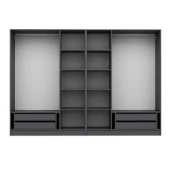 Met een royale breedte van 270 cm, een hoogte van 190 cm en een diepte van 52 cm biedt deze kledingkast voldoende ruimte om je kleding, accessoires en spullen netjes op te bergen. De vele legplanken zorgen voor een effectief gebruik van de opslagruimte, waardoor hij perfect is voor zelfs de meest uitgebreide garderobecollecties.