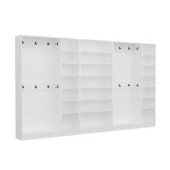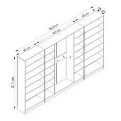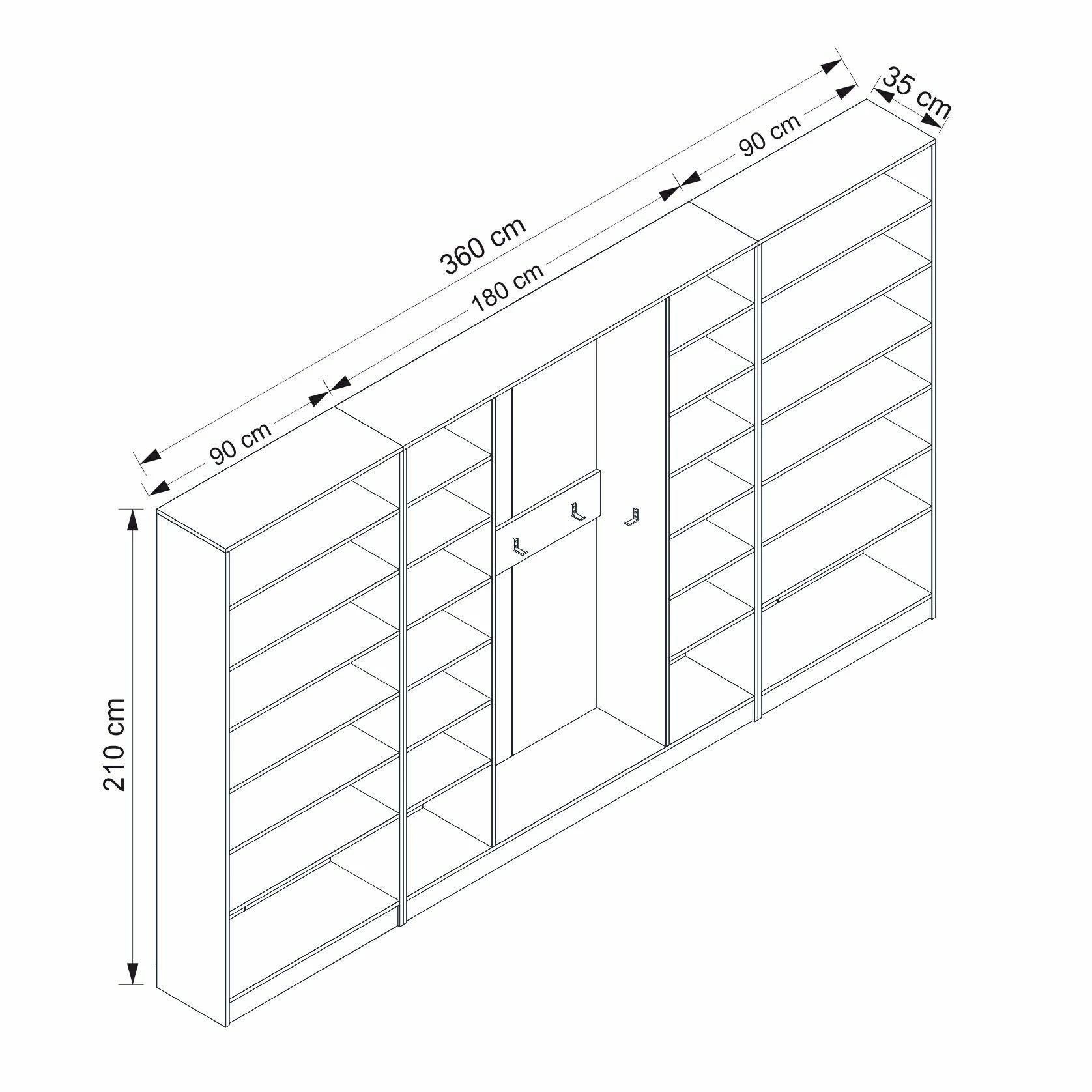 Met een breedte van 360 cm, een hoogte van 210 cm en een diepte van 35 cm biedt de Woody Fashion kapstok voldoende opbergruimte voor je dagelijkse benodigdheden. Hij is voorzien van meerdere planken, lades en haken, zodat je je spullen handig kunt ordenen. Of het nu je sleutels, portemonnees of jassen zijn, deze halstandaard biedt een speciale plek voor elk item, waardoor je minder rommel hebt en je hal netjes blijft.