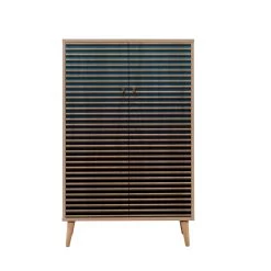 De multifunctionele kast Vella is gemaakt van 100% gemelamineerd spaanplaat met een duurzame UV-coating. Het heeft haagbeukpoten, metalen en touw handgrepen en wordt geleverd in een Sonoma Oak kleur. Afmetingen: 80cm B x 127cm H x 36cm D met plankhoogte van 25cm