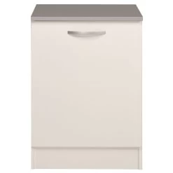Dit matwitte onderkastje bestaat uit een deur en een legplank. De handgrepen zijn gemaakt van kunststof en kregen een moderne metaalkleur. Kies op onze site de overige bijbehorende meubelen uit en stel zelf jouw droomkeuken samen!