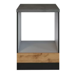 Onderkast Sorrella 60x60x85cm uit spaanplaat. Afgewerkt met melamine in eikdecor en grafiet. Geschikt voor een inbouwoven en kookplaat. Keukentoestellen niet inbegrepen.