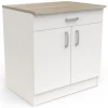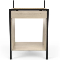Deze onderkast in licht Kronberg eikdecor krijgt wat meer karakter door de stijlvolle matzwarte accenten. Deze onderkast is geschikt voor een standaard inbouwfornuis van 60 cm lang. De hoogte van het paneel vooraan kan verzaagd worden en zo aangepast worden aan verschillende types fornuis. Combineer met de andere keukenkasten van de Chivaya-collectie en stel zo uw eigen industriële keuken samen naar smaak. Het fornuis en de schroeven en pluggen voor muurbevestiging zijn niet inbegrepen.