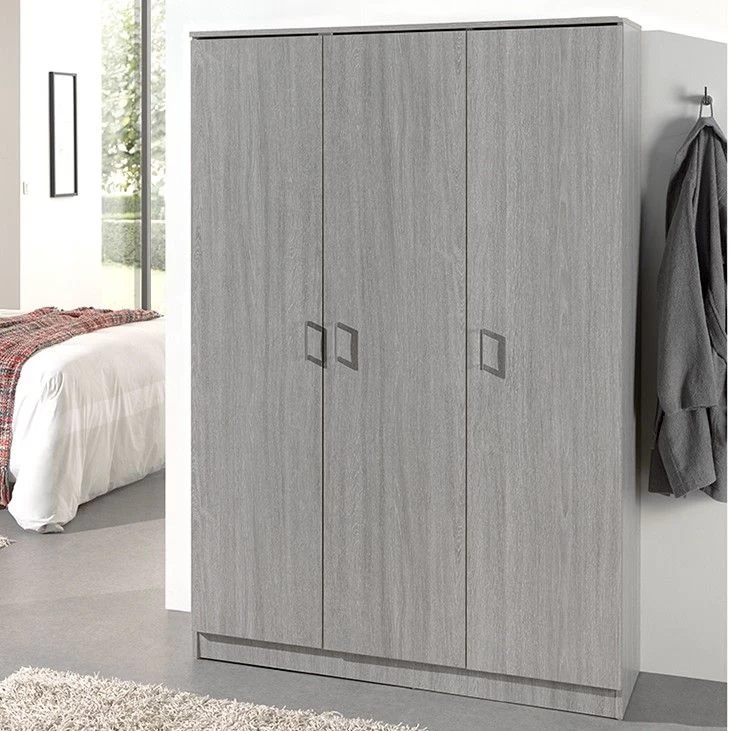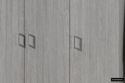 Opbergkast Ray met 3 deuren en 4 legplanken, 120 cm breed, gemaakt van spaanplaat, decor grijze eik.