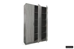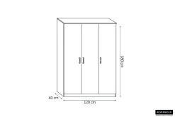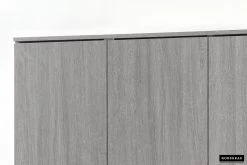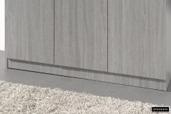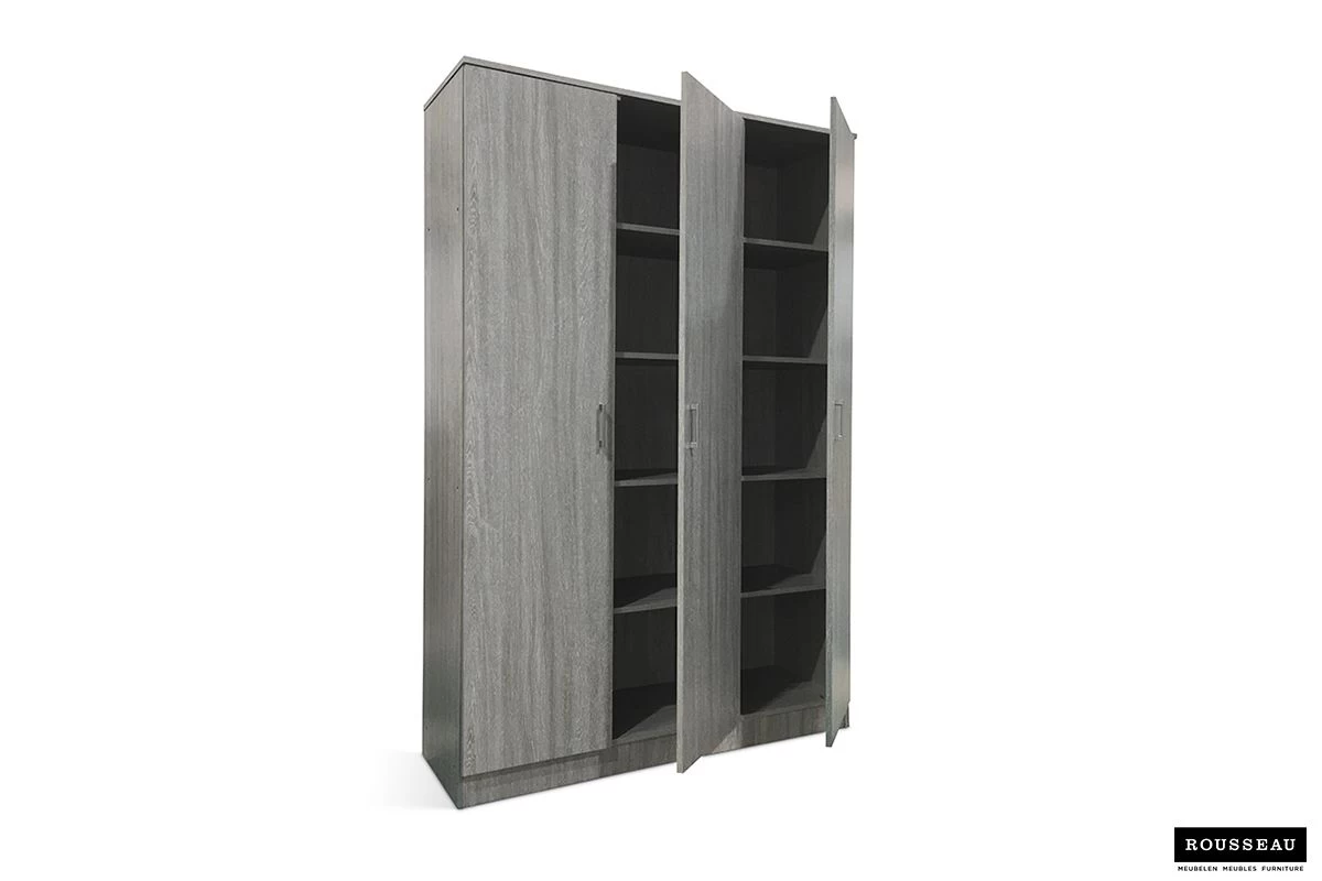 Een opgeruimde garage of bergruimte begint bij opbergkast Ray! Deze praktische opbergkast beschikt over 3 deuren en 4 legplanken binnenin waarop je heel wat spullen kwijt kan. De kast is 120 cm breed en is gemaakt van spaanplaat met decor van grijze eik.