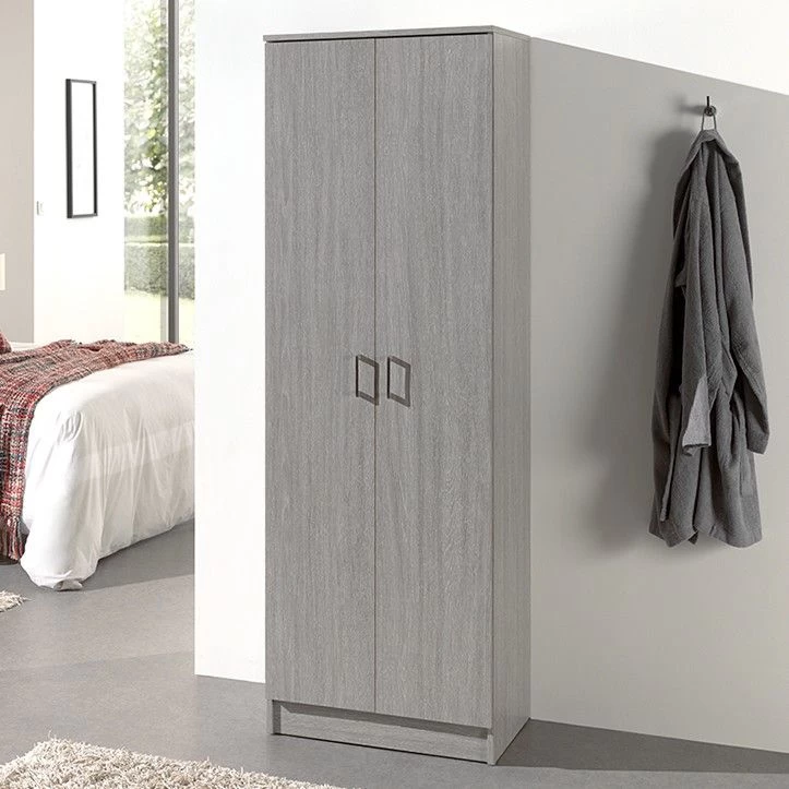 Opbergkast Ray met 2 deuren en 4 legplanken, 60 cm breed, gemaakt van spaanplaat, decor grijze eik.