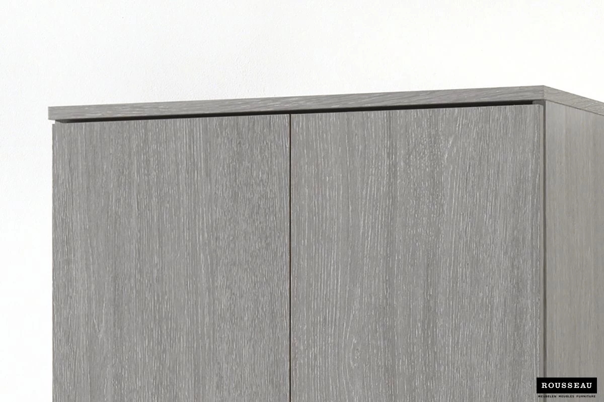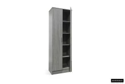 Een opgeruimde garage of bergruimte begint bij opbergkast Ray! Deze praktische opbergkast beschikt over 2 deuren en 4 legplanken binnenin waarop je heel wat spullen kwijt kan. De kast is 60 cm breed en is gemaakt van spaanplaat met decor van grijze eik.