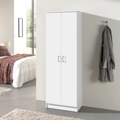 Opbergkast Ray met 2 deuren en 4 legplanken, 60 cm breed, gemaakt van witte spaanplaat.