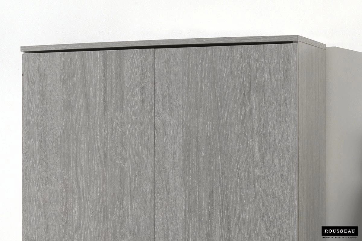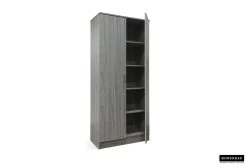 Een opgeruimde garage of bergruimte begint bij opbergkast Ray! Deze praktische opbergkast beschikt over 2 deuren en 4 legplanken binnenin waarop je heel wat spullen kwijt kan. De kast is 80 cm breed en is gemaakt van spaanplaat met decor van grijze eik.