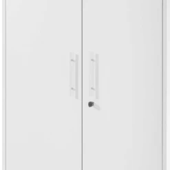Richt je complete kantoor in met de meubelen van de Sonra-reeks. De kasten zijn gemaakt uit lichtgrijze spaanplaat, wat ervoor zorgt dat de ruimte licht en toch georganiseerd blijft. Deze kast van 216 cm hoog bestaat uit twee draaideuren. Je hebt de mogelijkheid om de deuren op slot te doen.