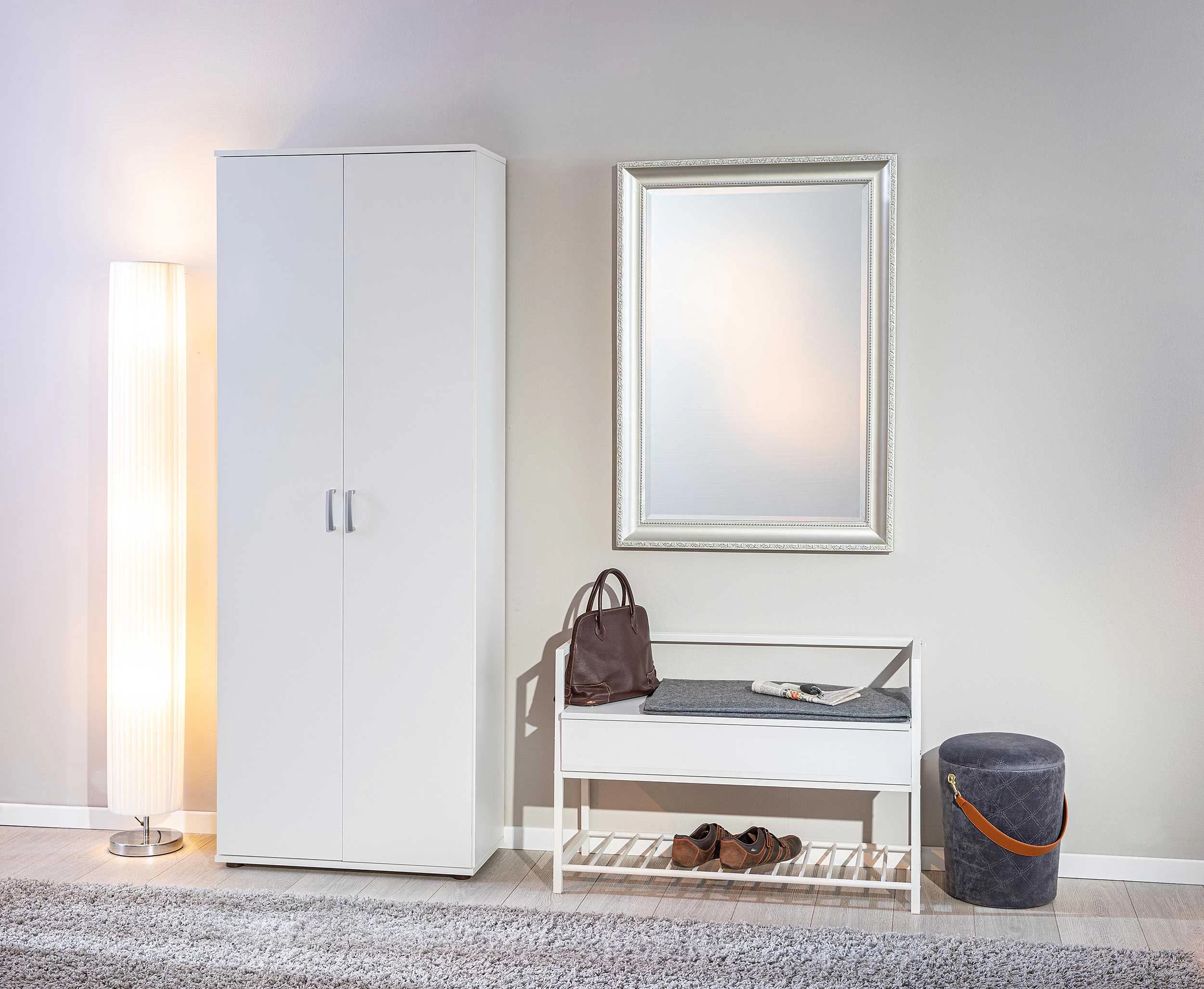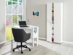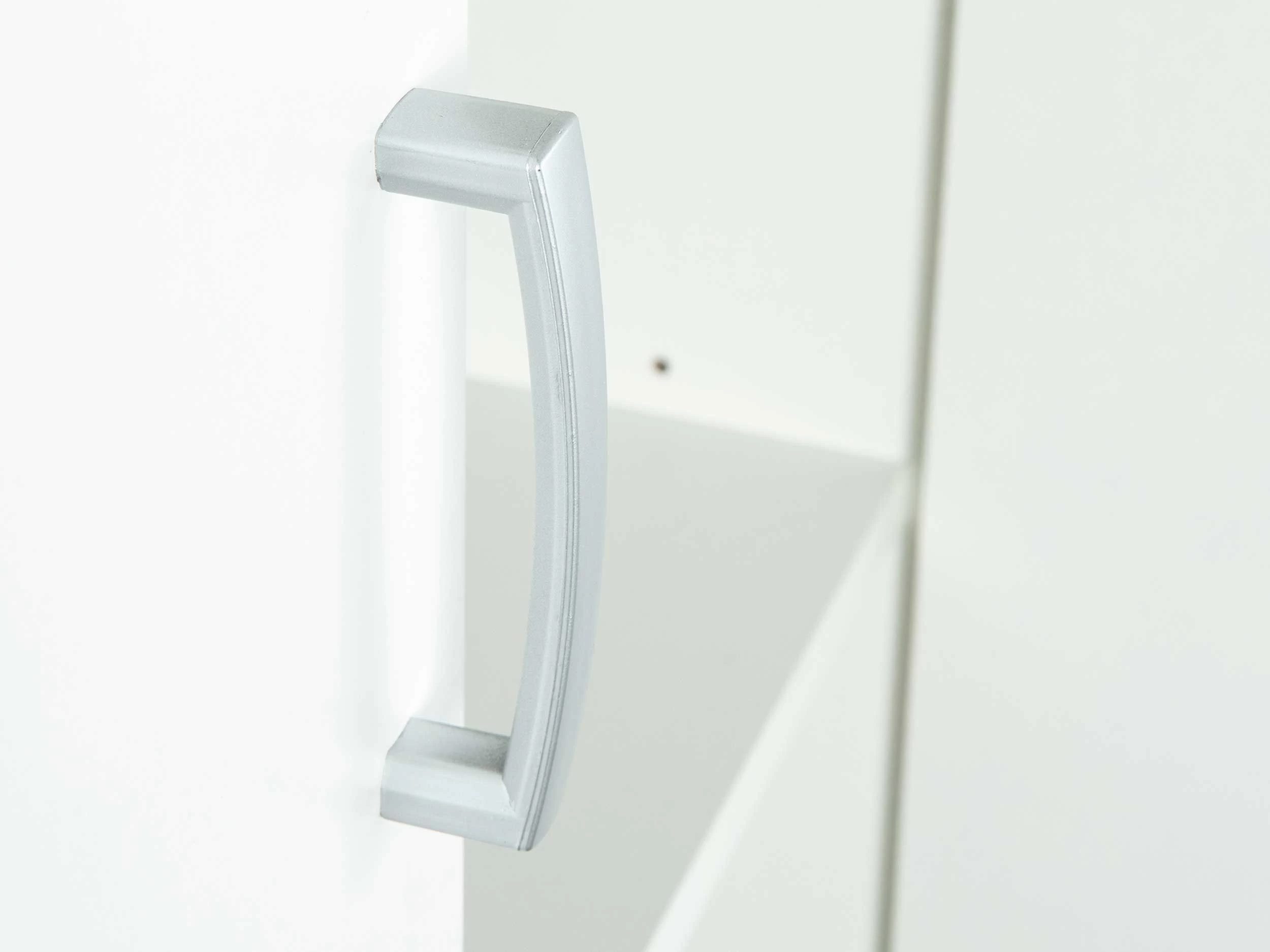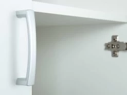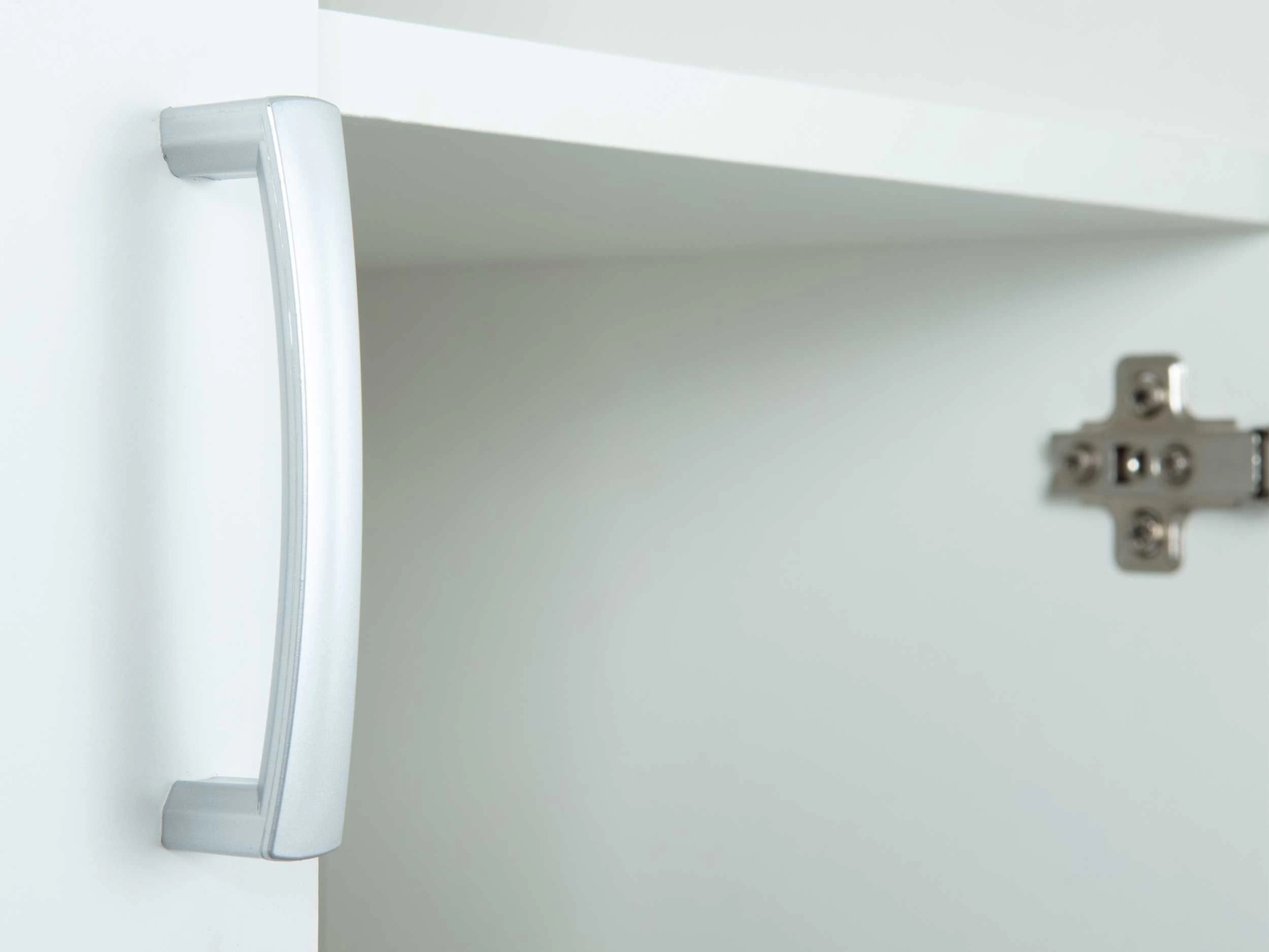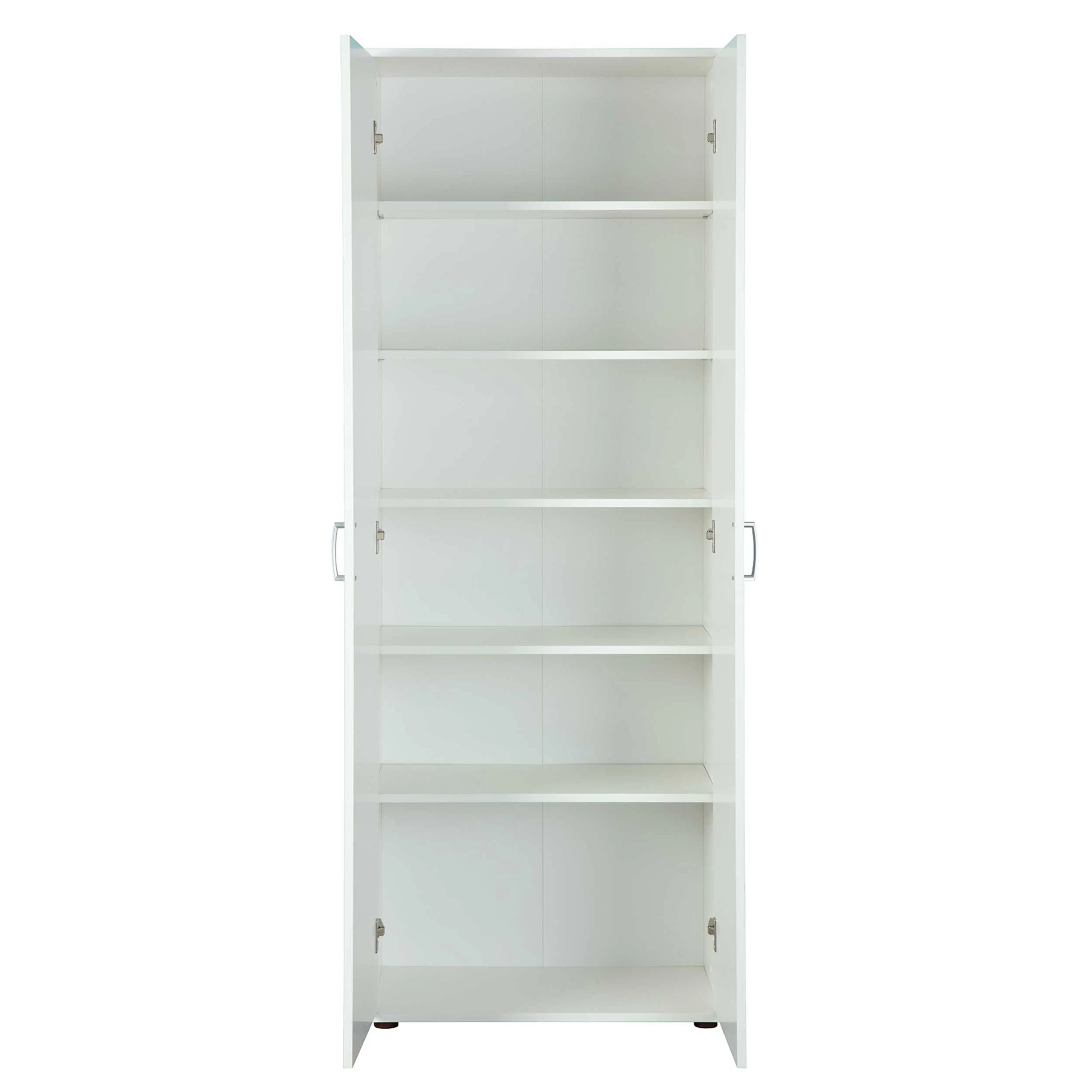 Met opbergkast Vetra wordt rommel in huis verleden tijd. Deze witte kast bestaat uit 2 deuren en 5 legplanken. Ze is gemaakt van spaanplaat. Elke legplank kan je op 3 verschillende hoogtes plaatsen. De handgrepen zijn gemaakt van pvc.