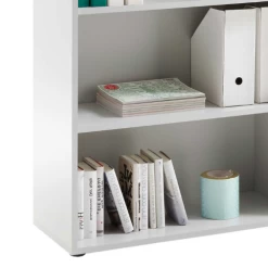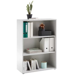 Richt je complete kantoor in met de meubelen van de Sonra-reeks. De kasten zijn gemaakt uit lichtgrijze spaanplaat, wat ervoor zorgt dat de ruimte licht en toch georganiseerd blijft. Dit rekje is 80 cm lang en 111 cm hoog. In de drie open vakken kan je spullen opbergen die je dagelijks nodig hebt, eventueel gecombineerd met decoratie.