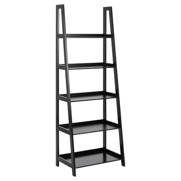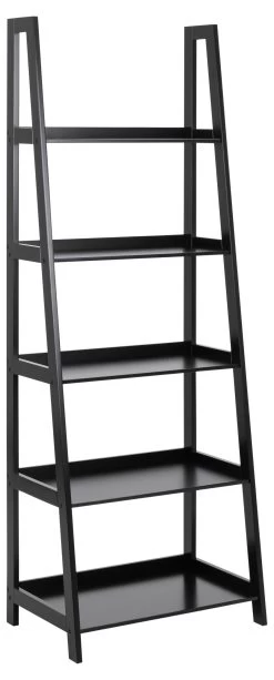 Opbergrek Wally, uitgerust met 5 legplanken. Gemaakt uit MDF met een zwartgelakte afwerking.