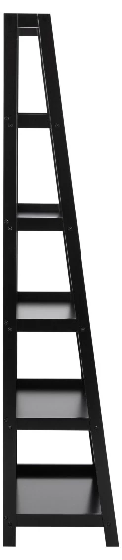 De Wally opbergrek is volledig open en voorzien van 5 legplanken. Met deze opbergrek fleur je meteen elke woonruimte op, door er uw decoratiestukken op te plaatsen. Deze moderne opbergrek past in elke interieur dankzij het minimalistische design. Je kan deze opbergrek ook om de praktische reden gebruiken en boeken, borden of zelf planten op plaatsen. Kortom, een multifunctionele opbergrek gemaakt uit MDF met een zwartgelakte afwerking.