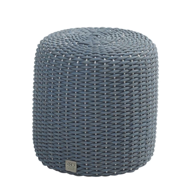 Poef voor buiten uit blauw polypropyleentouw met een diameter van 40cm.