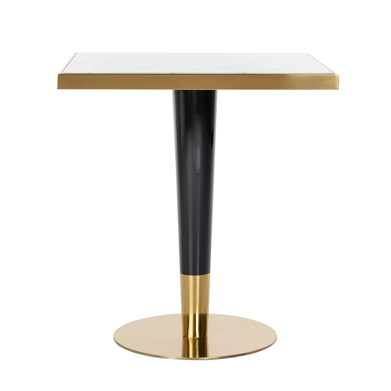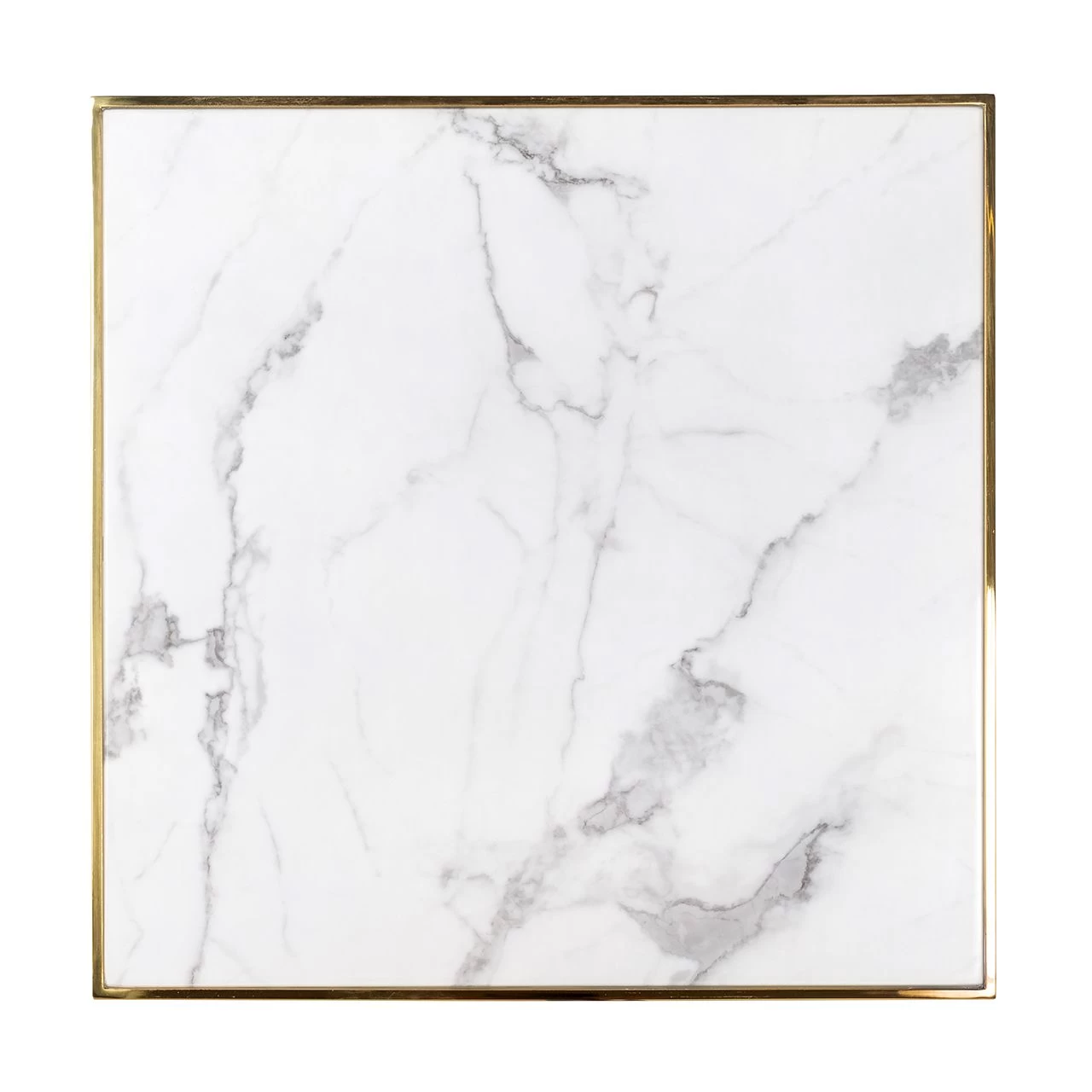 Vierkante bartafel Osker met tafelbad in wit imitatiemarmer en goudkleurige details.