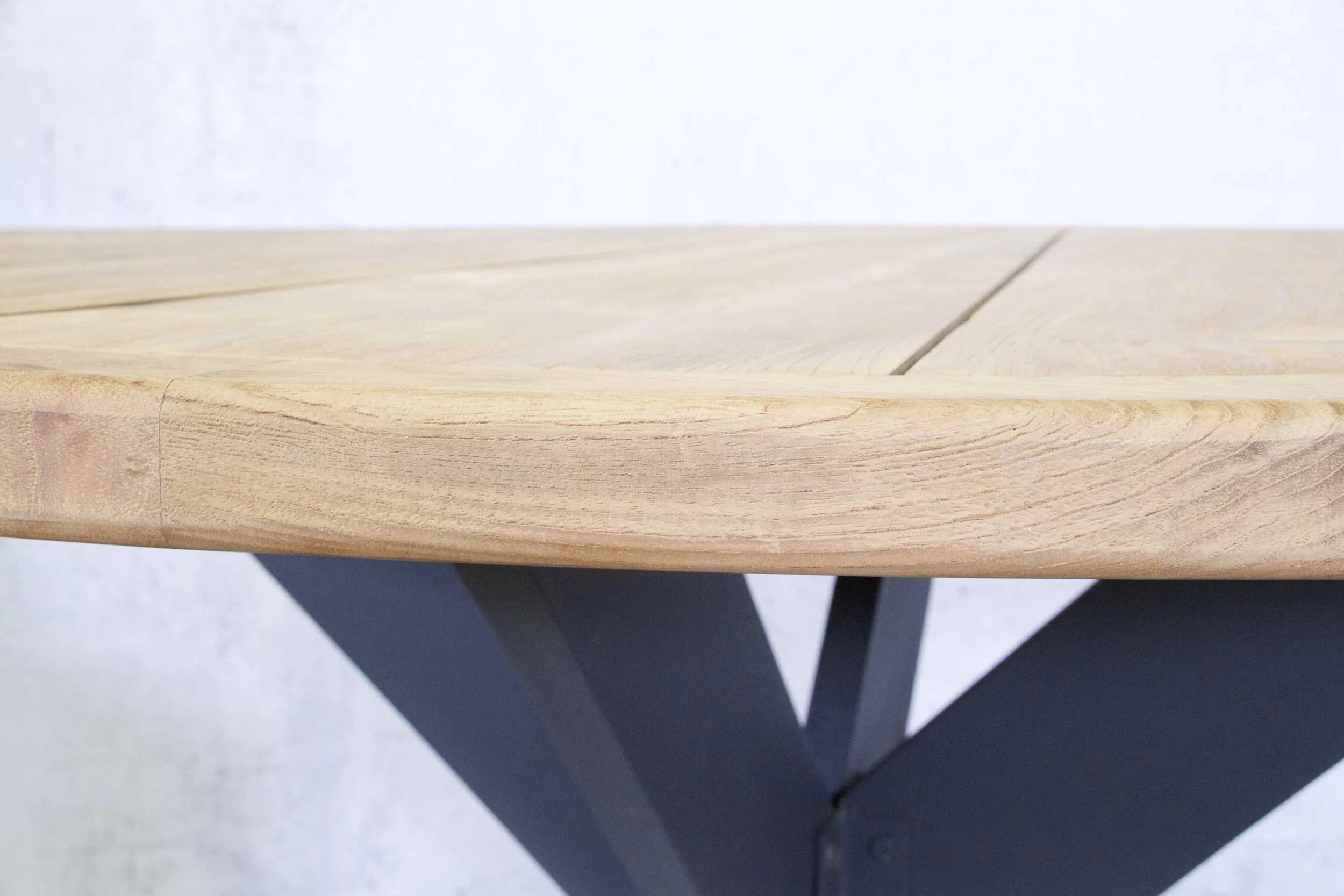 Deze stijlvolle ronde tuintafel geeft jouw tuin meteen een industriële uitstraling. Het donkergrijze onderstel is gemaakt van mat aluminium, het bovenblad is gemaakt van natuurlijke teakhout. De Elva-tuintafel beschikt over een diameter van 130 cm en is daarom geschikt voor vier personen. Aan deze tafel is het ’s zomers heerlijk vertoeven, samen met vrienden of familie!