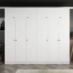 De strakke witte kleur van de kast voegt een vleugje elegantie en verfijning toe aan je ruimte en past moeiteloos in elke interieurstijl of kleurenschema. Het veelzijdige ontwerp maakt hem geschikt voor elke kamer, of het nu een slaapkamer, kleedkamer of inloopkast is.