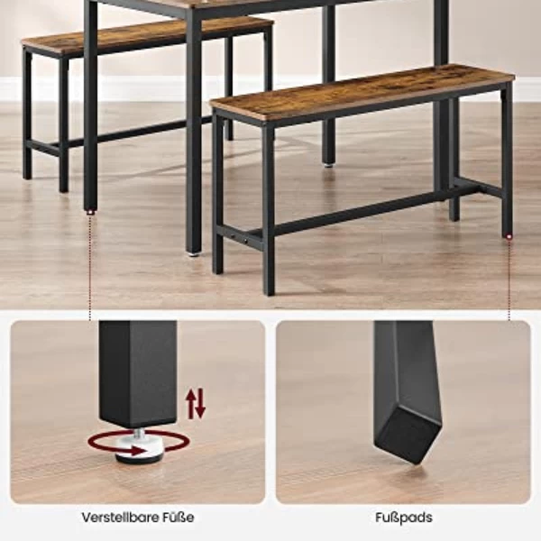 Geniet van familieontbijtjes met deze tafel met 2 banken van 97 x 30 cm en stalen frame. Hij is perfect voor je keuken, eetkamer of woonkamer en staat garant voor stevigheid en een rustieke bruine en zwarte look in industriële stijl. Moeiteloze montage in een handomdraai! #ALINRU