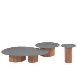 Met de salontafels Viola maak je een echt statement op je terras. De tafel heeft een opvallende voet uit teakhout en een donkergrijs tafelblad uit gesinterde steen. Dit contrast en het moderne ontwerp maken van de tafel een echte eyecatcher. De tafels Viola zijn verkrijgbaar in verschillende formaten. Kies het formaat dat voor jou het beste past, of combineer voor een trendy effect.