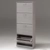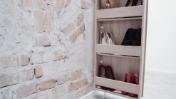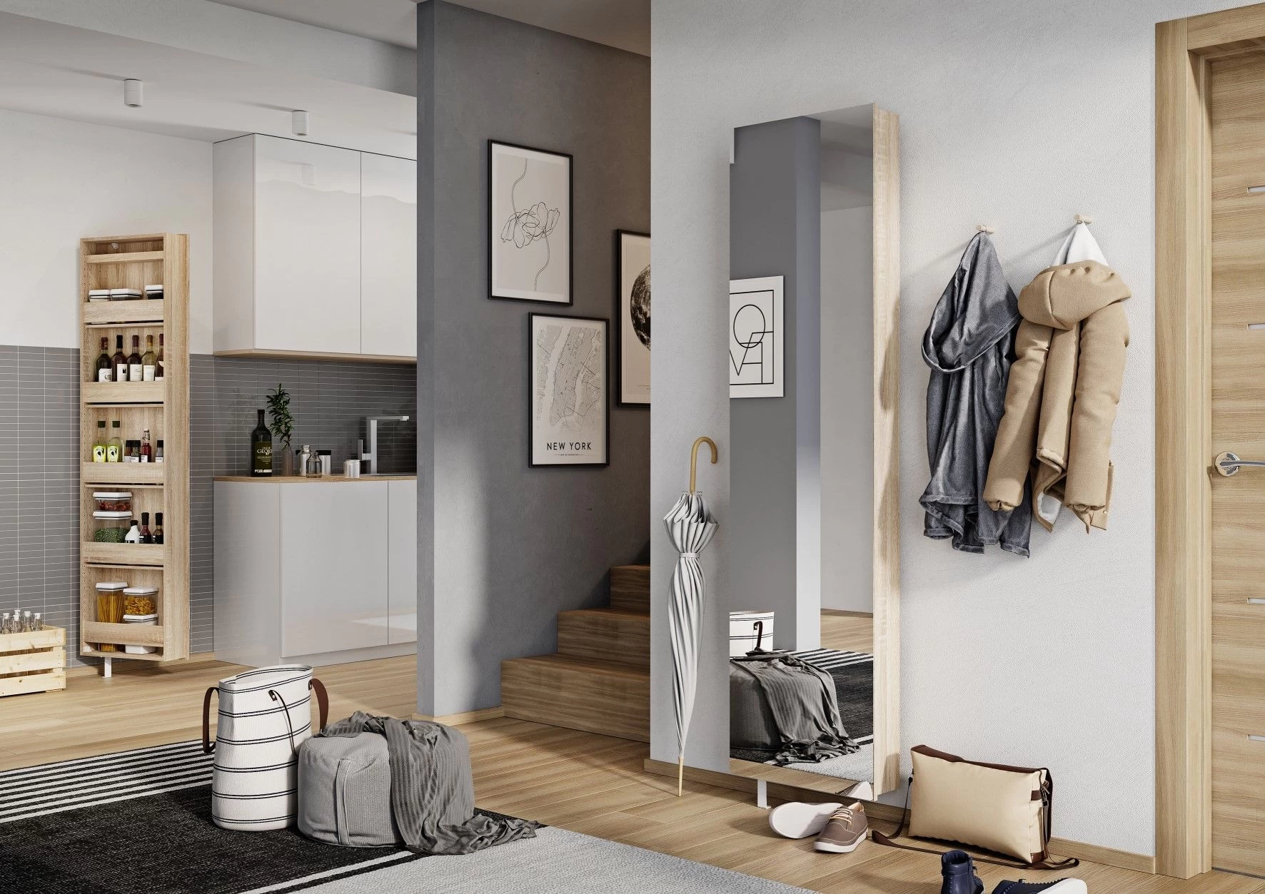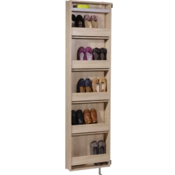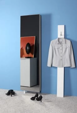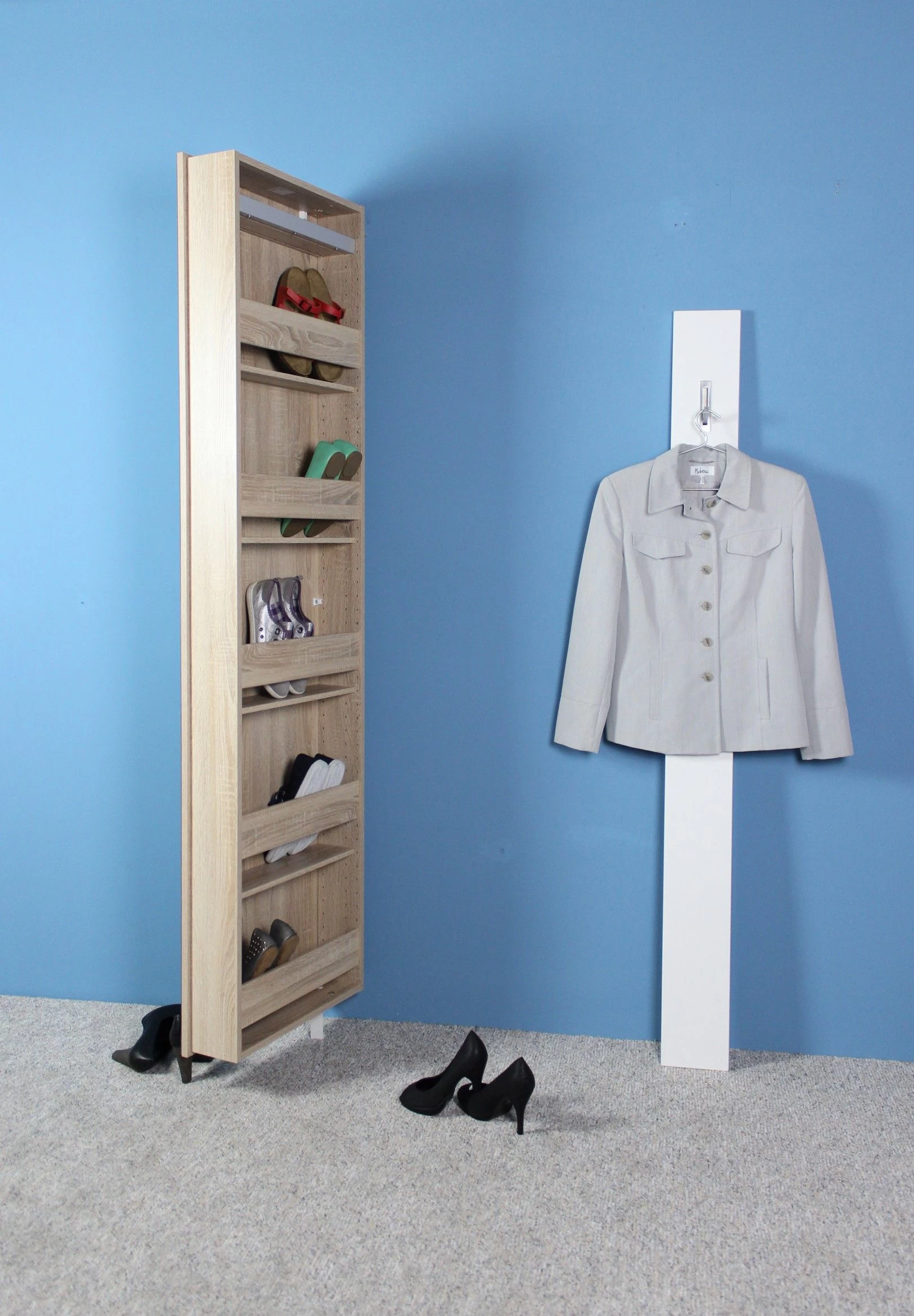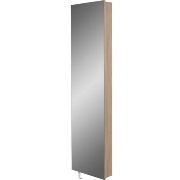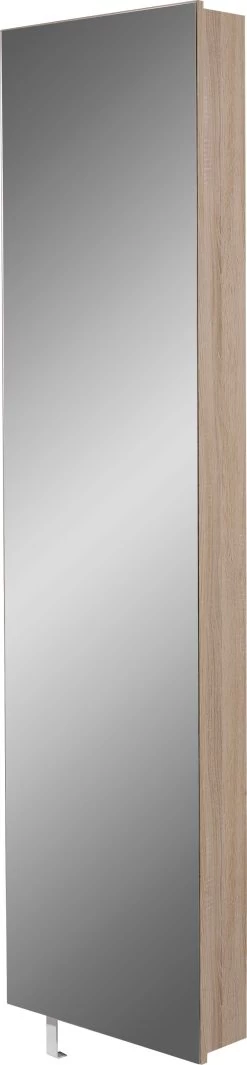 Ben je op zoek naar een opvallend, maar tegelijk nuttig meubelontwerp voor je schoenen? Dan ben je met deze Larsen-opbergsensatie in eikdecor absoluut aan het juiste adres.ย Met een hoogte van 195 cm en een diepte van slechts 18 cm is dezeย draaikastย een slank en elegant meubel dat zelfs in de kleinste hal kan worden opgesteld. De robuuste draaikast dient in se alsย schoenenopbergkastย voor een tiental paar schoenen, maar kan evengoed als extravagant meubel ingezet worden om keuken- of badkamerspullen in op te bergen. Dit alles zit mooi weggewerkt door deย spiegelย die aan de voorkant is gemonteerd.ย