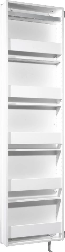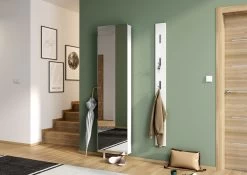 Ben je op zoek naar een opvallend, maar tegelijk nuttig meubelontwerp voor je schoenen? Dan ben je met deze witte Larsen-opbergsensatie absoluut aan het juiste adres.ย Met een hoogte van 195 cm en een diepte van slechts 18 cm is deze draaikast een slank en elegant meubel dat zelfs in de kleinste hal kan worden opgesteld. De robuuste draaikast dient in se als schoenenopbergkast voor een tiental paar schoenen, maar kan evengoed als extravagant meubel ingezet worden om keuken- of badkamerspullen in op te bergen. Dit alles zit mooi weggewerkt door de spiegel die aan de voorkant is gemonteerd.ย