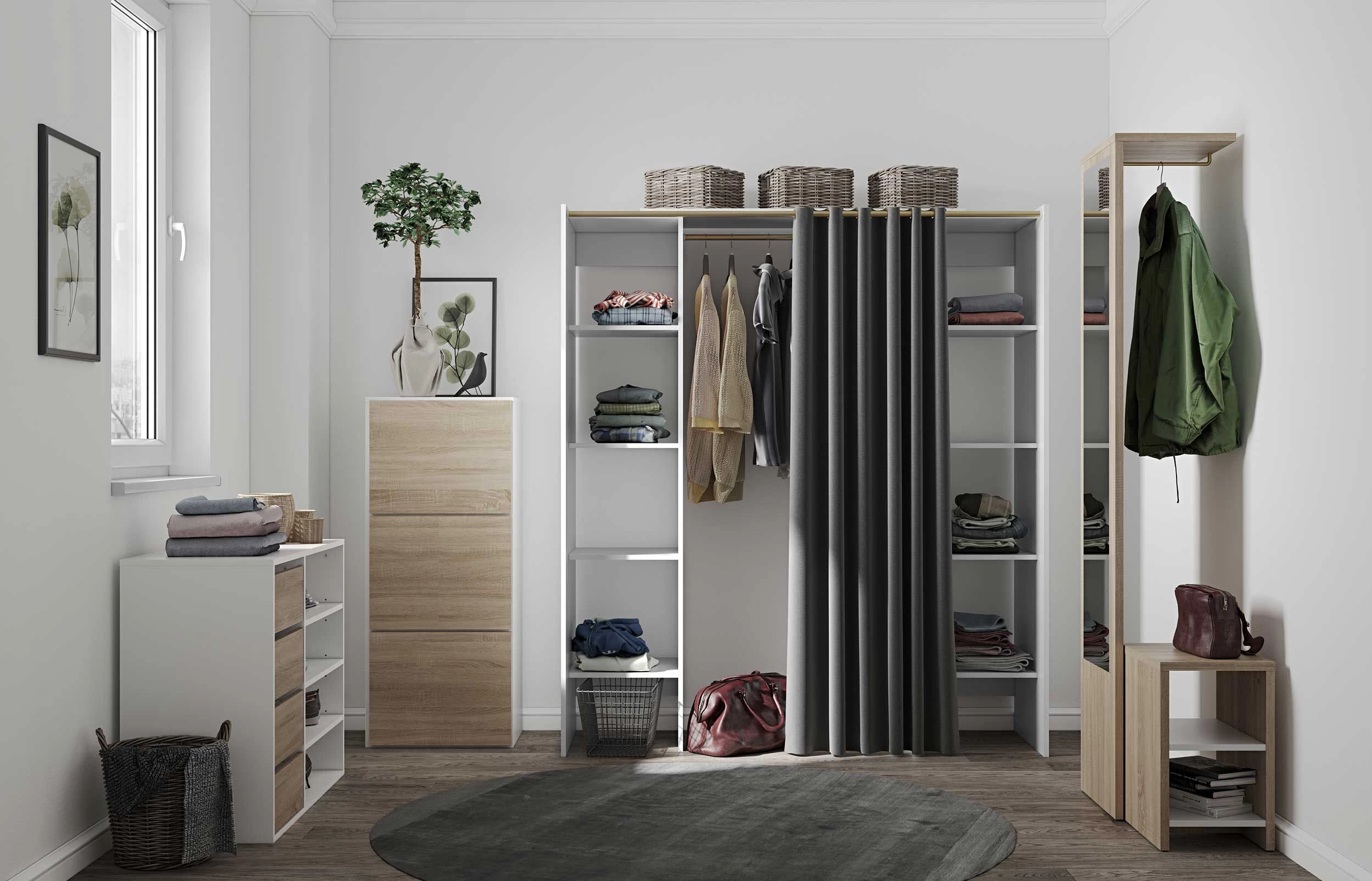Deze witte schoenenkast beschikt over 3 deuren in eikdecor en 5 legplanken.ย Er is plaats voorzien voor +/- 12 paar schoenen.