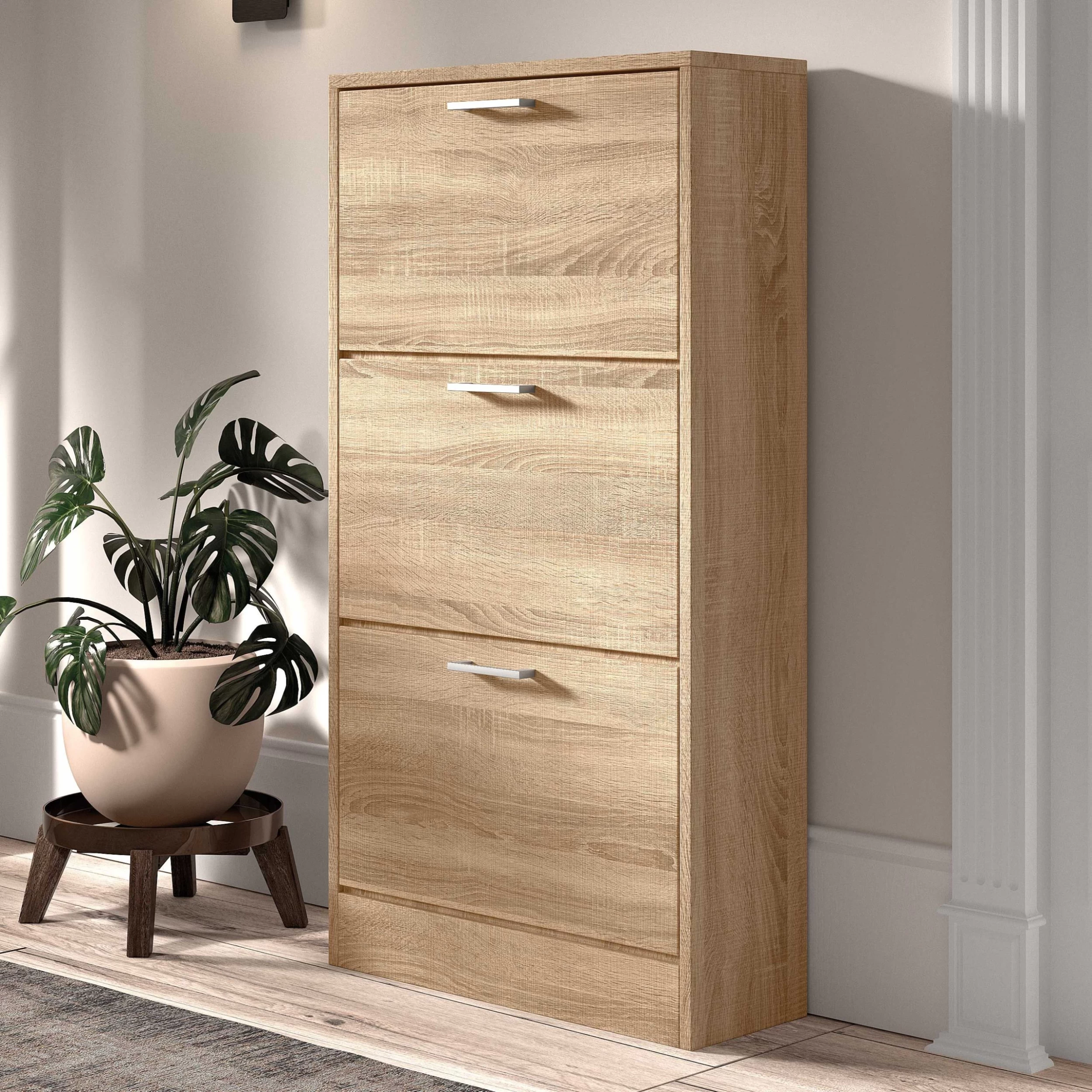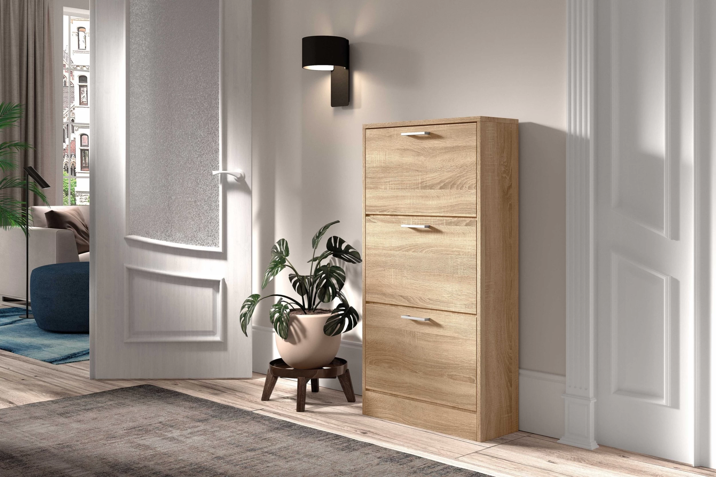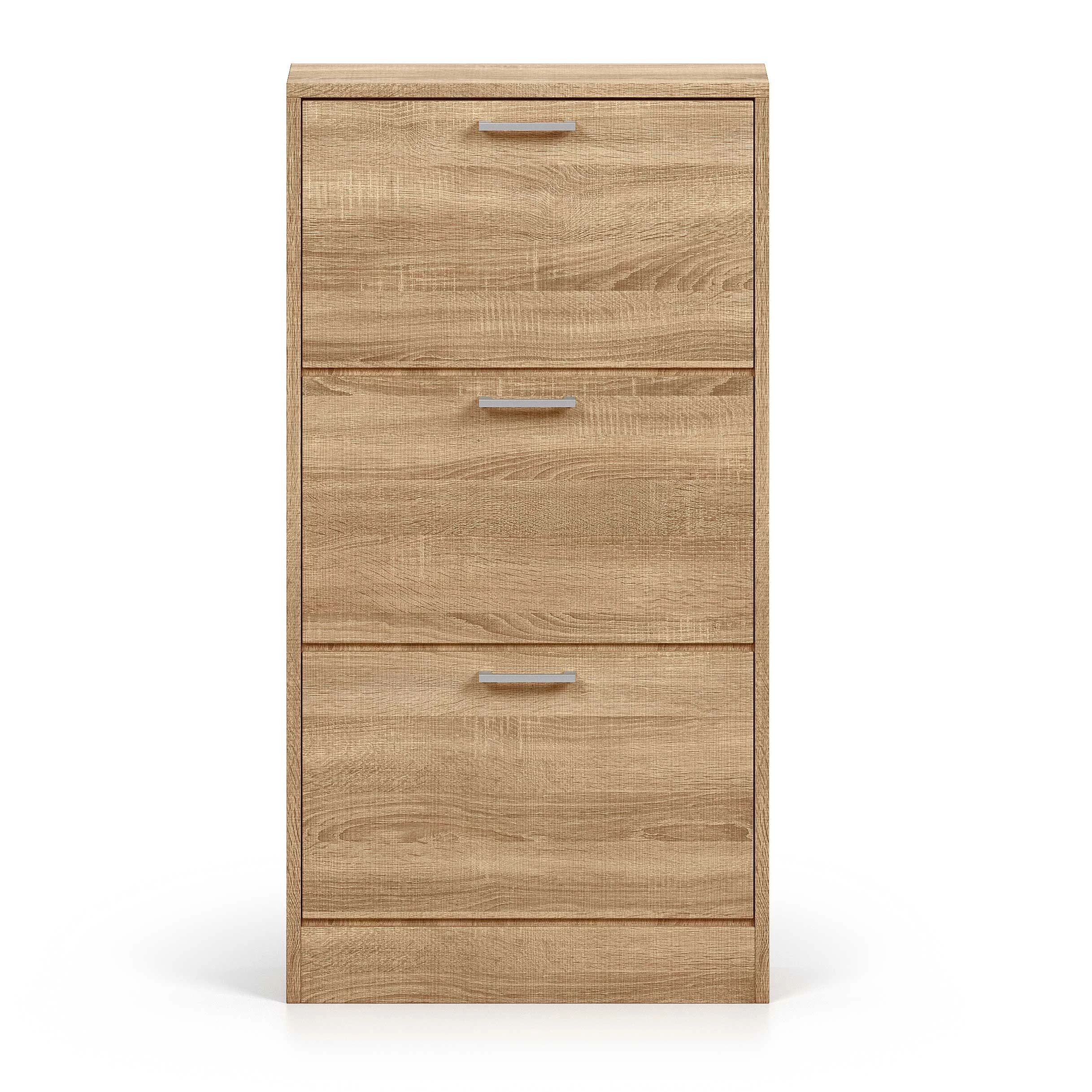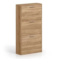 Schoenenkast Carini 3 laden, licht sonoma kleur, vervaardigd uit spaanplaat.