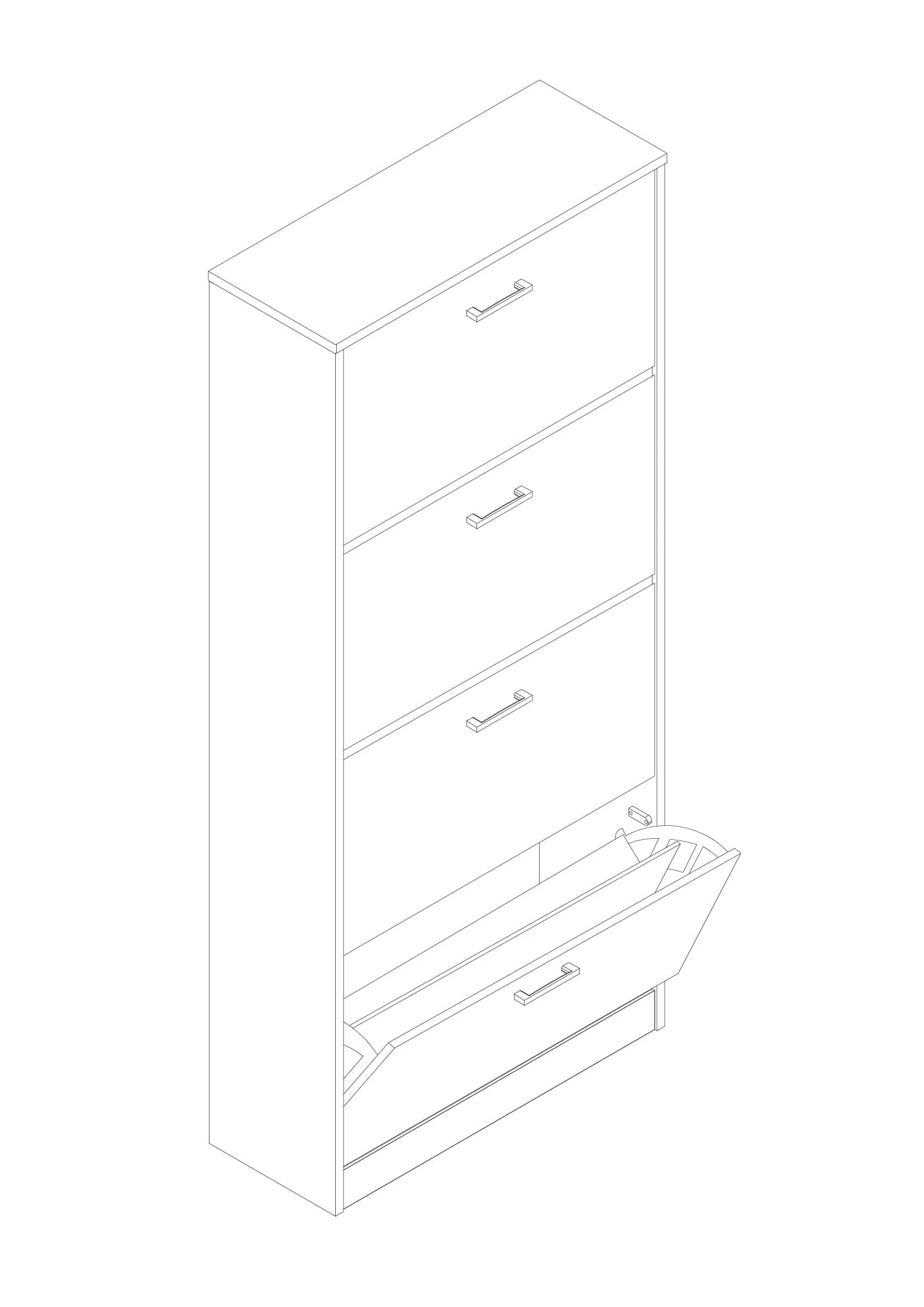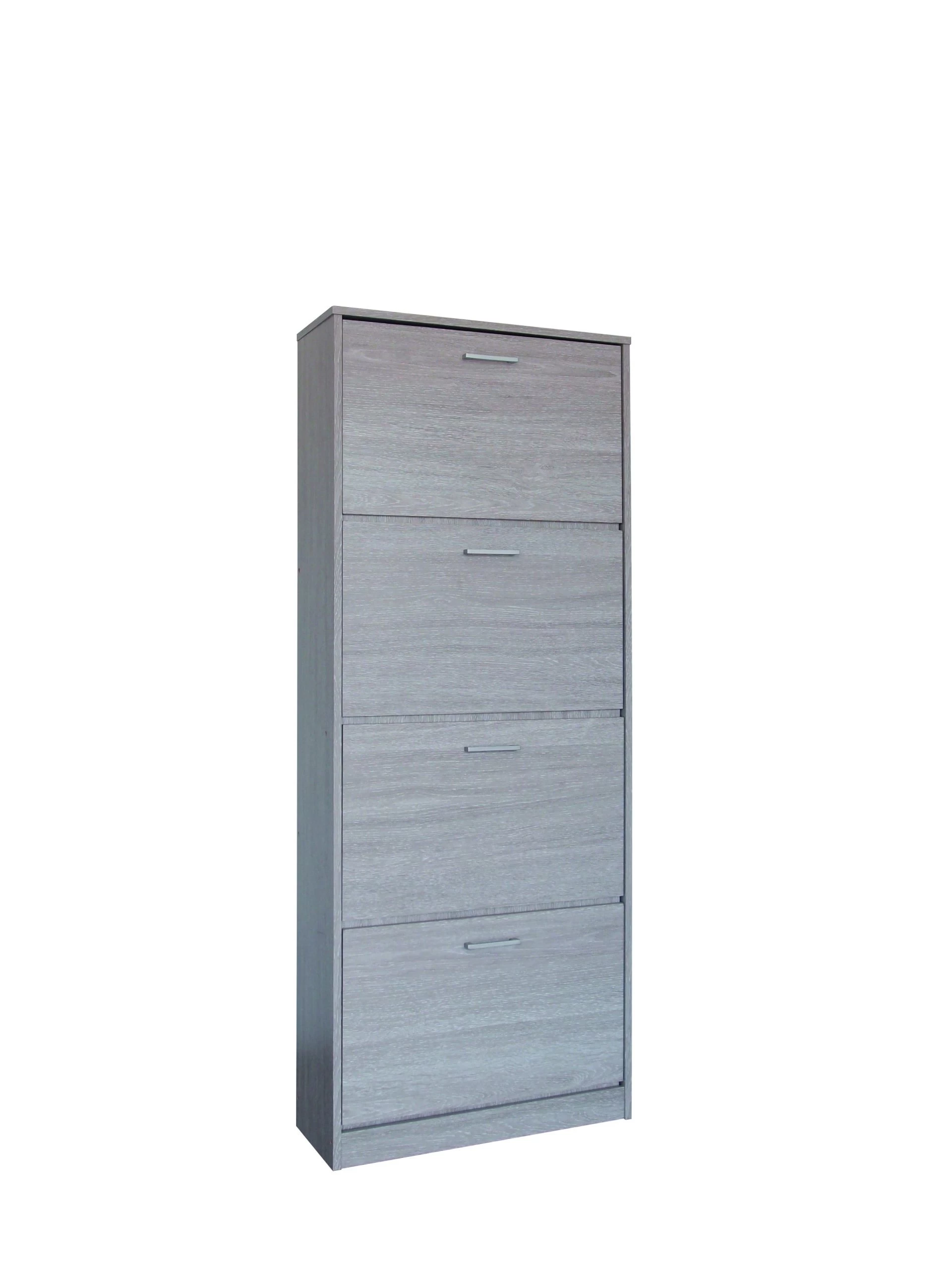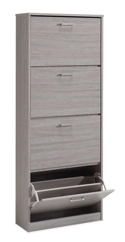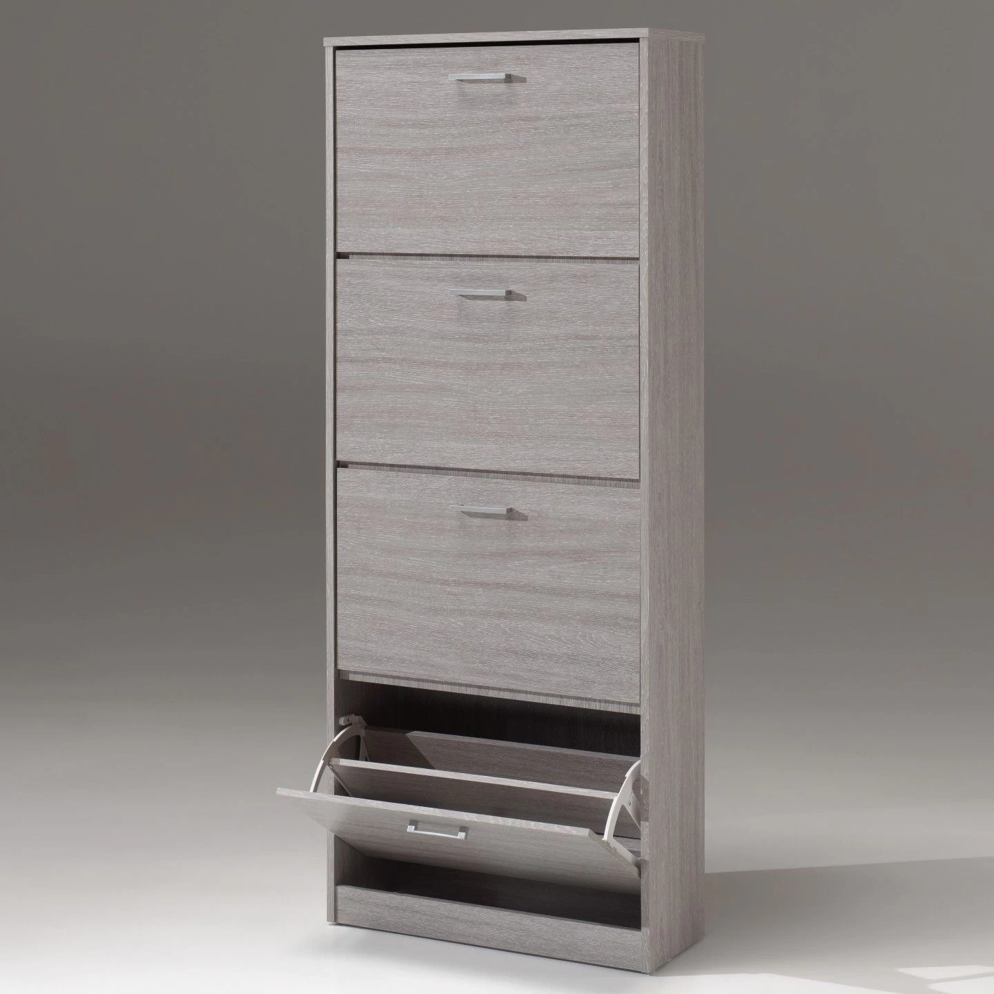 Schoenenkast Carini 4 laden, decor van grijze eik, vervaardigd uit spaanplaat.